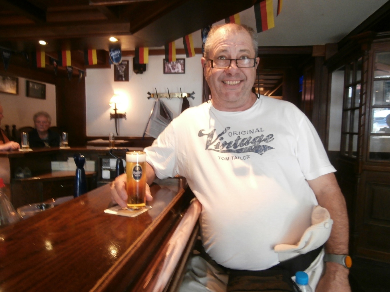 We tried Gaffel Kolsch, Peter Kolsch and Dam Kolsch – all in 0.2l glasses. Michael thought he needed two at a time to make a schooner. The best one so far was the Gaffel. No one too friendly yet in the pubs. Not like Amsterdam……But we will keep trying.