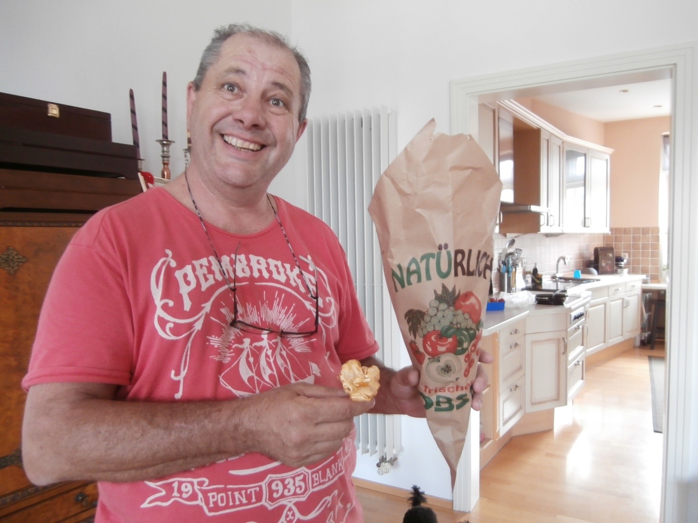Michael bought some pfiffelinges from the local green grocer. We have noticed that these have been advertised on local menus. They are a mushroom, better known to us as Chanteerelles. We had some with our dinner and Michael will cook a Pfifferling Cream Soup tomorrow night.