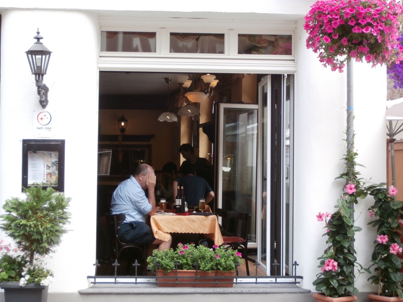 Firstly, Germans are spoilt for choice. There is such a variety of cold meats, breads, biscuits, beer and wine. And, it is all much cheaper than at home. Much of what we saw is not available in our supermarkets, more’s the pity! For example, Michael bought some speck here and paid €1.20 and at home it would cost $5-6. A litre of milk cost 45c. The are some shops which specialise in organic produce and their goods are a little more expensive. Food bought in the markets is also a little more expensive, but it is fun to try to make yourself understood.