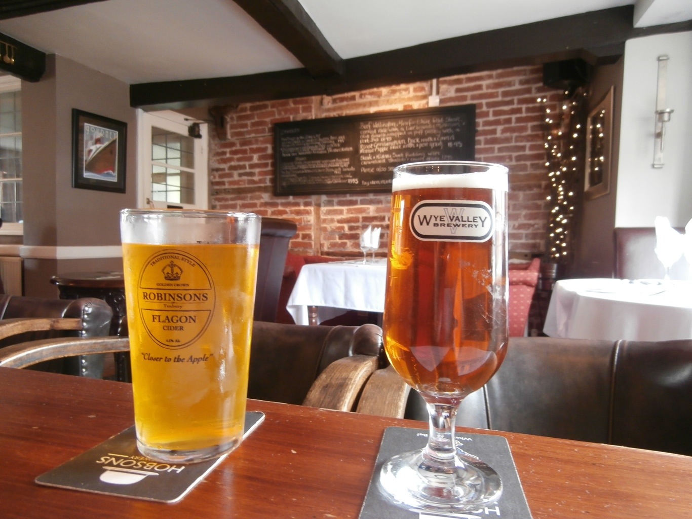 Michael also got to taste his first local cider- a pint of Robinsons Flagon Cider, which is poured from a tap and I tried a local ale – Wye Valley Brew (3.8%).
