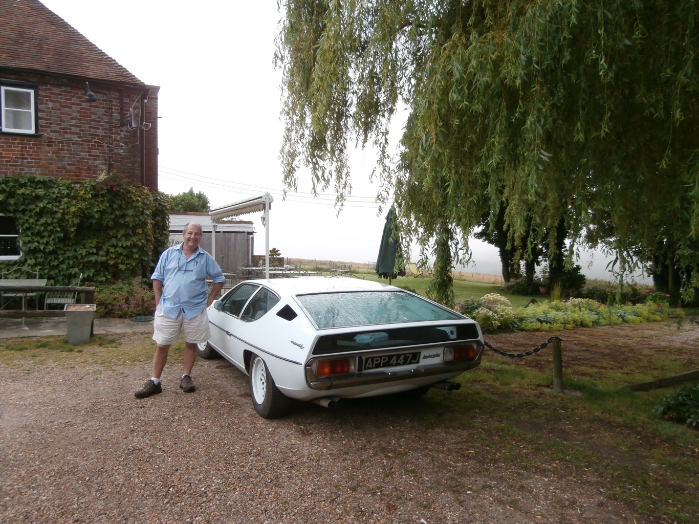 Michael was keen to have his photo taken with the Lambourgine that was parked outside the little pub. Note how the chairs are set facing the fields while you enjoy a beer in the garden.