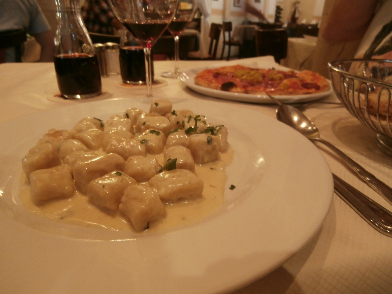 Michael enjoyed a pizza and I had gnocchi and four cheeses. Plus a chianti for me and a Cabernet Sauvignon for Michael.