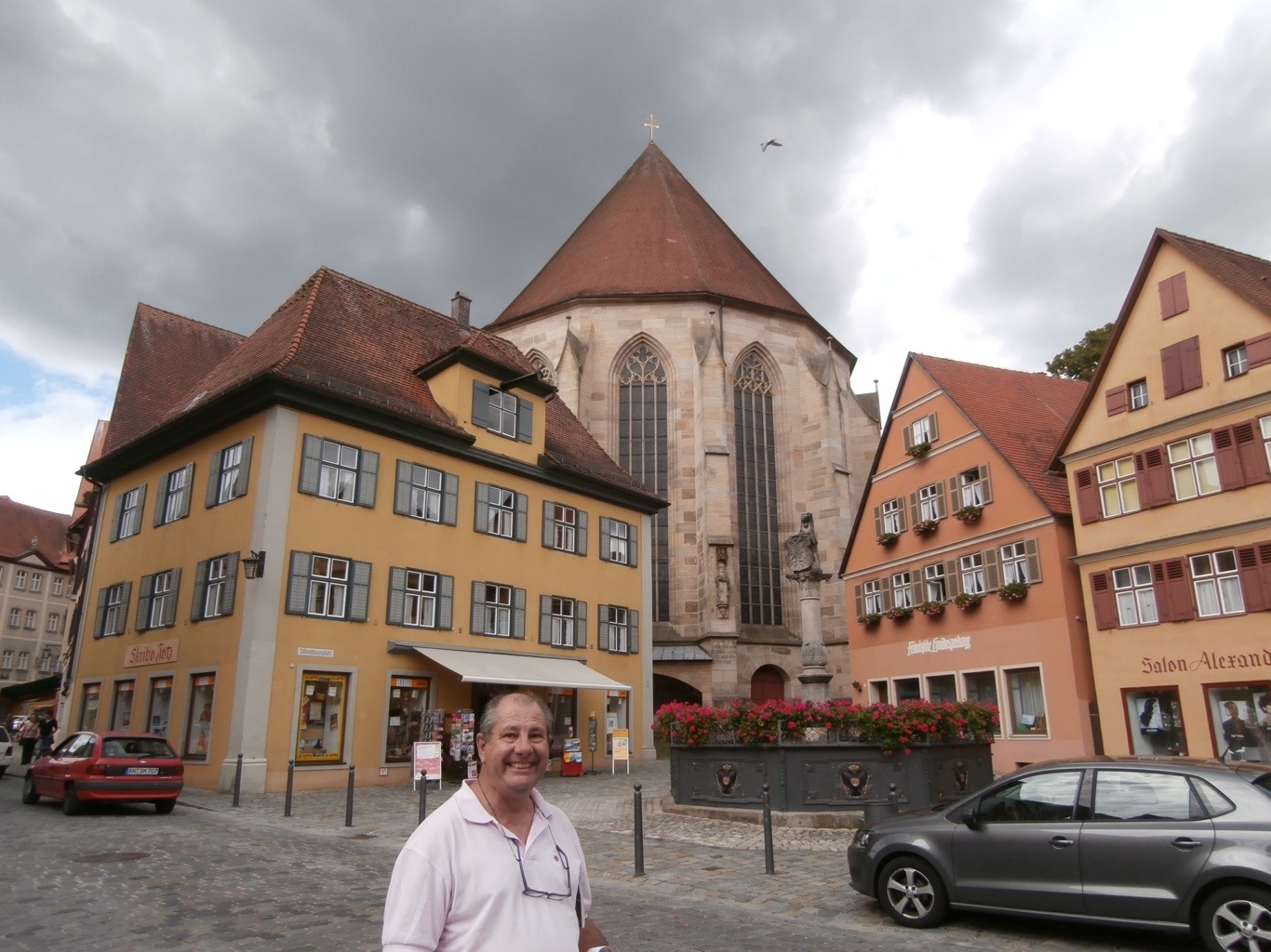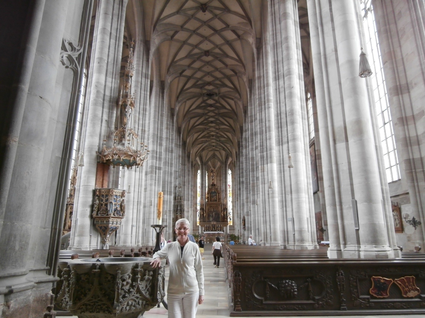 The main church is St George which has a relatively small tower when compared with its nave. Michael took a photo of me inside the church which shows the (large) size of the central nave.