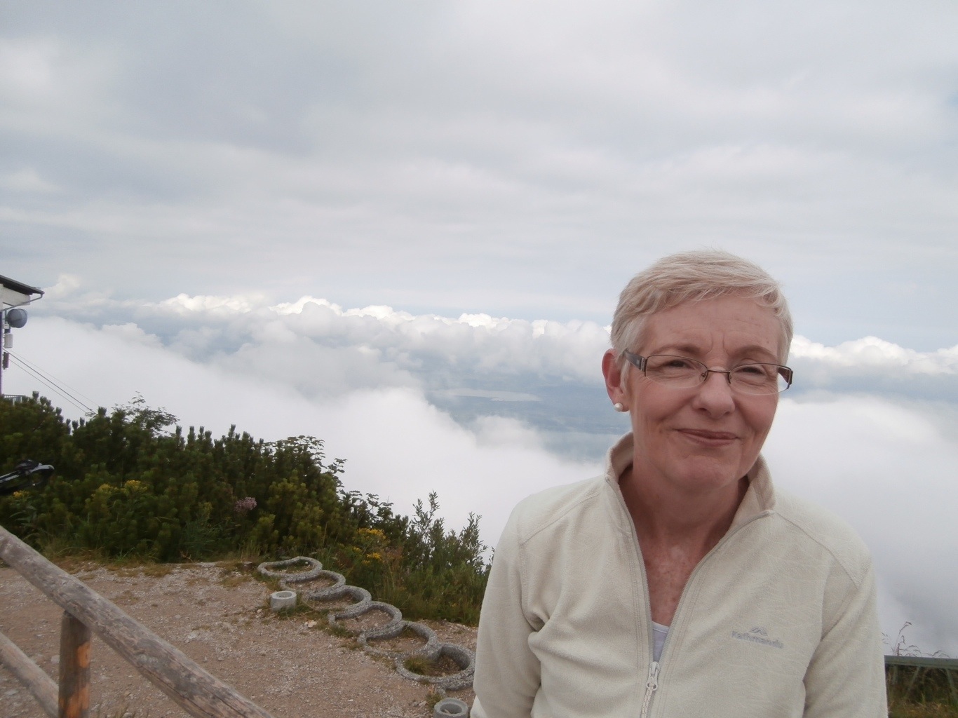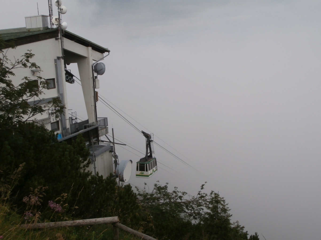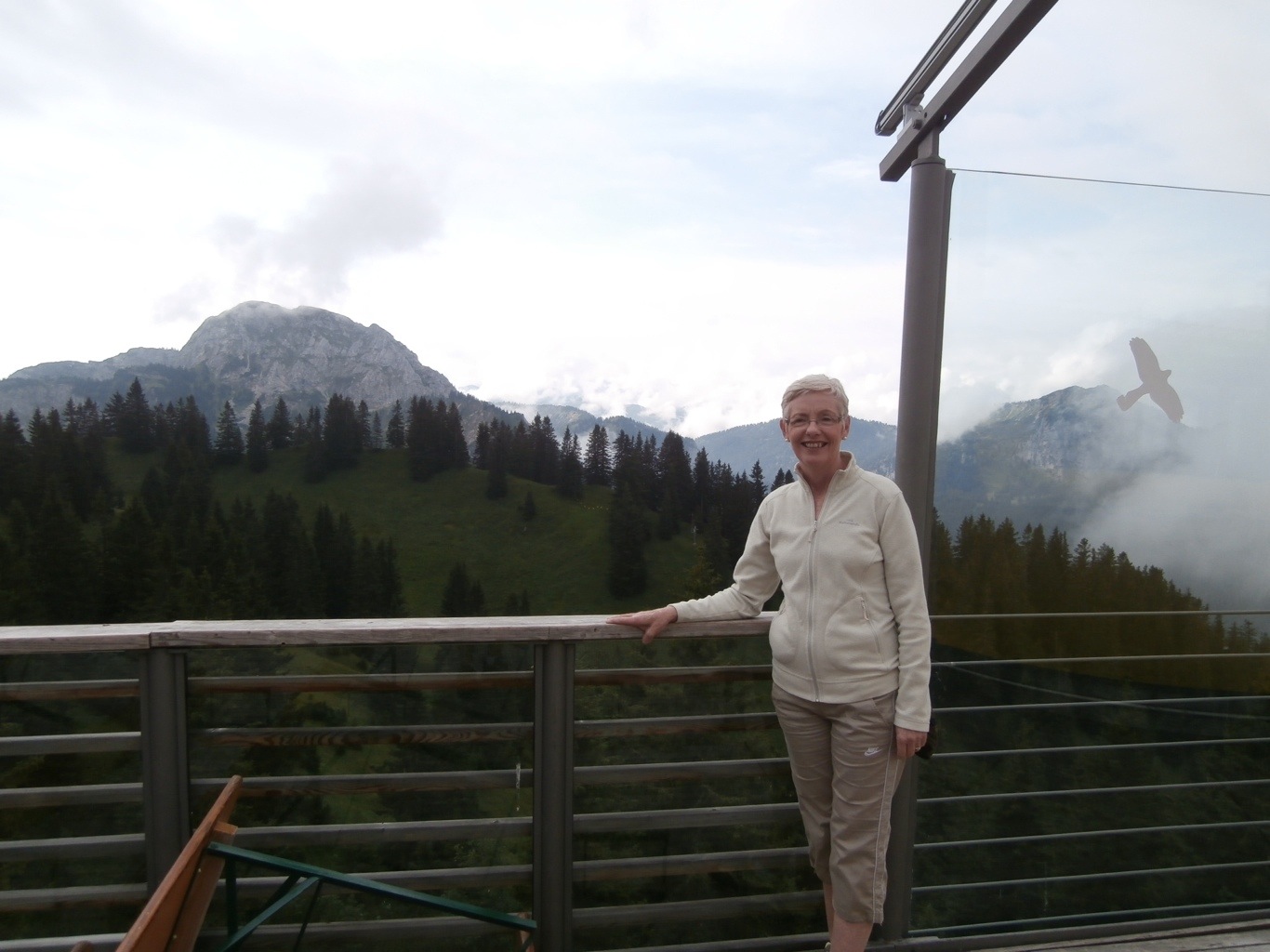 This morning we drove back to the two castles we visited yesterday to take some photos of our own before we went to the Tegelbergbahn at Schwangau. This is a cable car that takes people, mostly hang gliders and very keen walkers, to the top of a very high peak (approx 1730m high). The clouds were pretty thick and so while we were there no gliders “jumped”. But the views from the cable car were breathtaking.