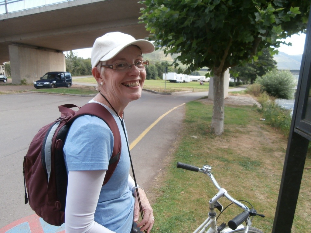 Today we set off with a packed lunch and rode northwards, back towards Cochem, to our final destination of the small village of Schweich. The bike trail was well signed and told us it was 13 km (each way).