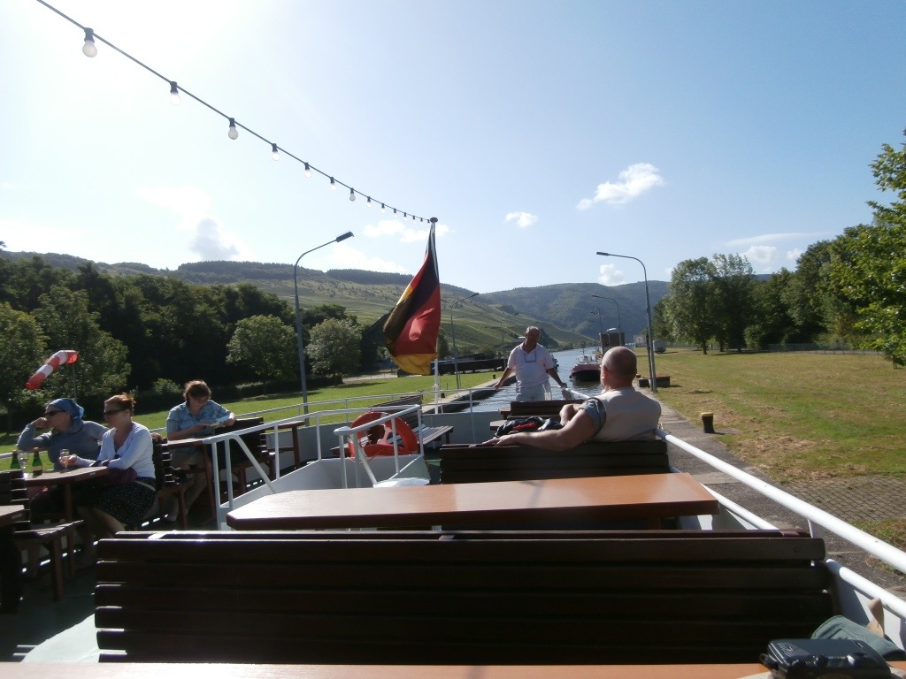 The weather was perfect and we enjoyed the 8 hour trip. There were two locks each way. One was the biggest on the Mosel. It changed the height of the river by 9 metres.