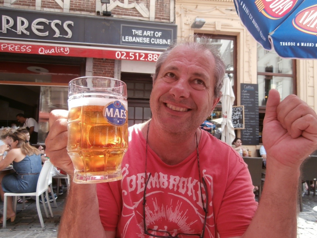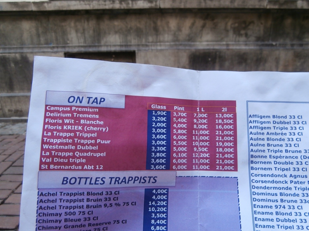 By accident we found a famous watering hole – the Delerium Café. It has about 5 or 6 bars that we could see, but there may have been more. It boasted having 100 different beers and 400 vodkas. We did try a few including the Delerium Tremens (denoted with a pink elephant) which was beautiful. While we sat there sipping some of the different beers on offer we reminisced about the ale and cider festival we went to in Tenbury Wells. We agreed that the Belgium beers were head and shoulders above anything we tried in England (sorry Chris). The pub had a menu that went for pages listing all the different beers on offer. The beers we tried cost between €2 to €3.80 / glass.