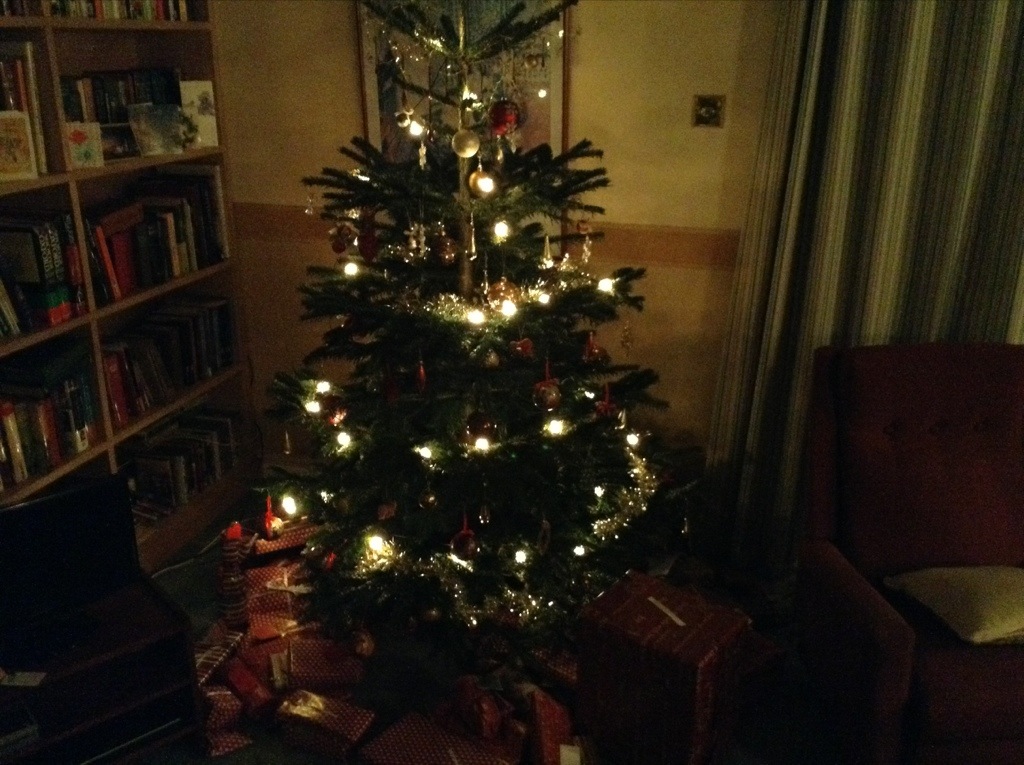 Their Christmas tree is beautiful – a real one that looks like a fake one, and the holly used to garnish the pudding was real too, but looked like the fake ones from home!