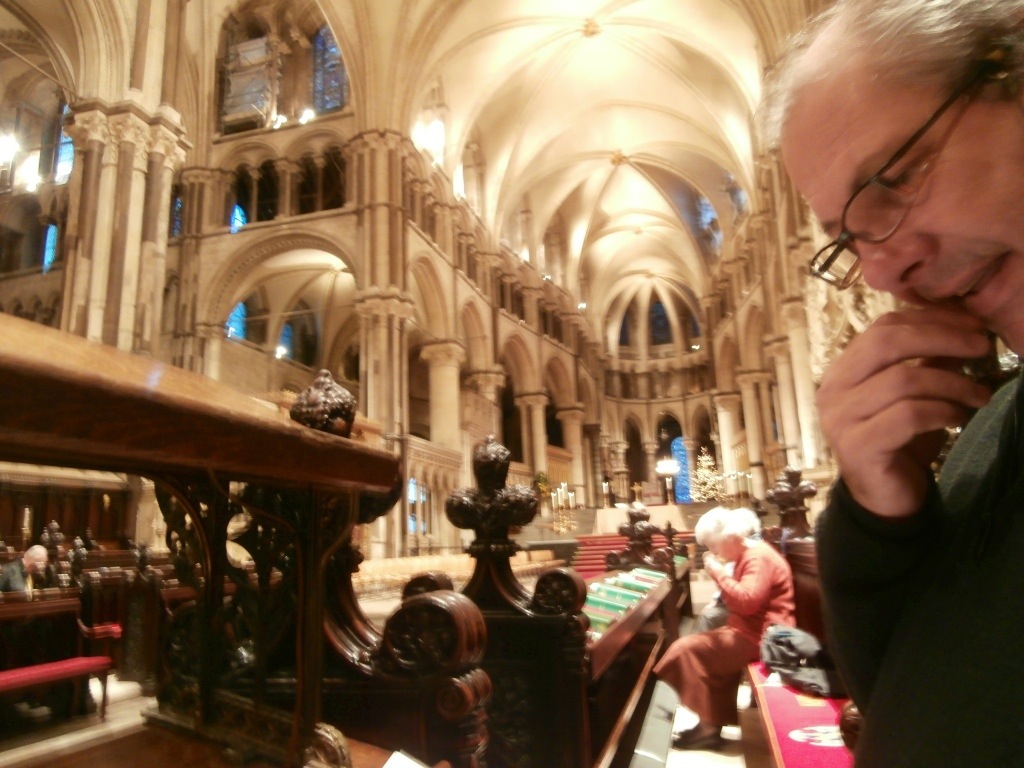 This morning we headed off early to attend the 8am Communion Service at Canterbury Cathedral. Along with about 20 other people we took our seats in the choir area, facing others seated across the aisle. The alter was up to our right and well away from us. The service had many similarities to the Catholic Mass, but there were also lots of differences. The first one being we had a female priest who did not face the congregation for most of the service. Only one collection, or we think it was a collection. We were the only ones who put money in, the others had a blue card or envelope they placed in the small fabric bag.