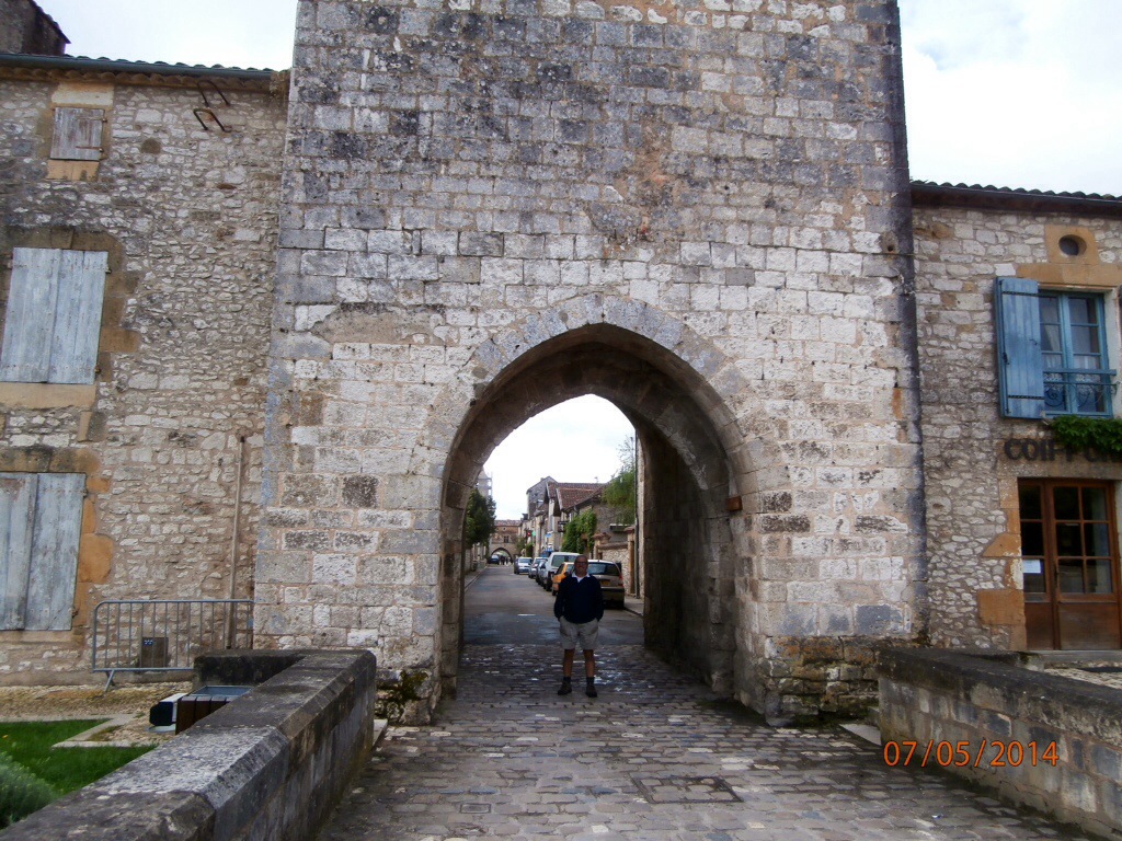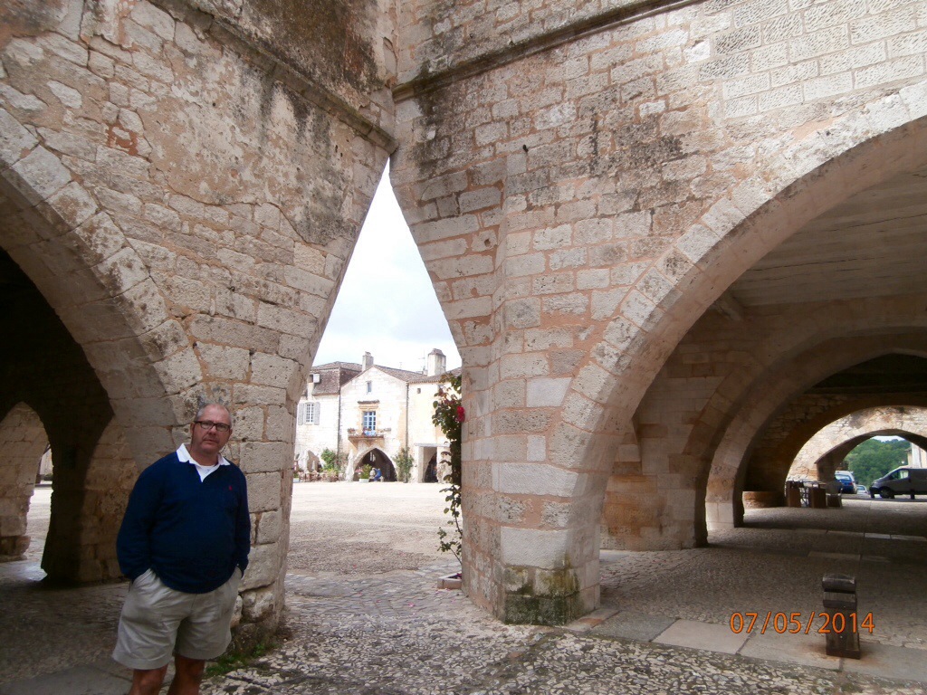 This village has been listed as a national monument as it is considered one of the most beautiful Bastides in France. It was founded in 1284 by Edward 1. It still has the walls of the city intact, but the most outstanding feature is the market square and the arcade covered shops. There are many new shops inside the old facades. It was not market day today and the summer crowds have not hit this area in force, so we had a wonderful walk around the village.