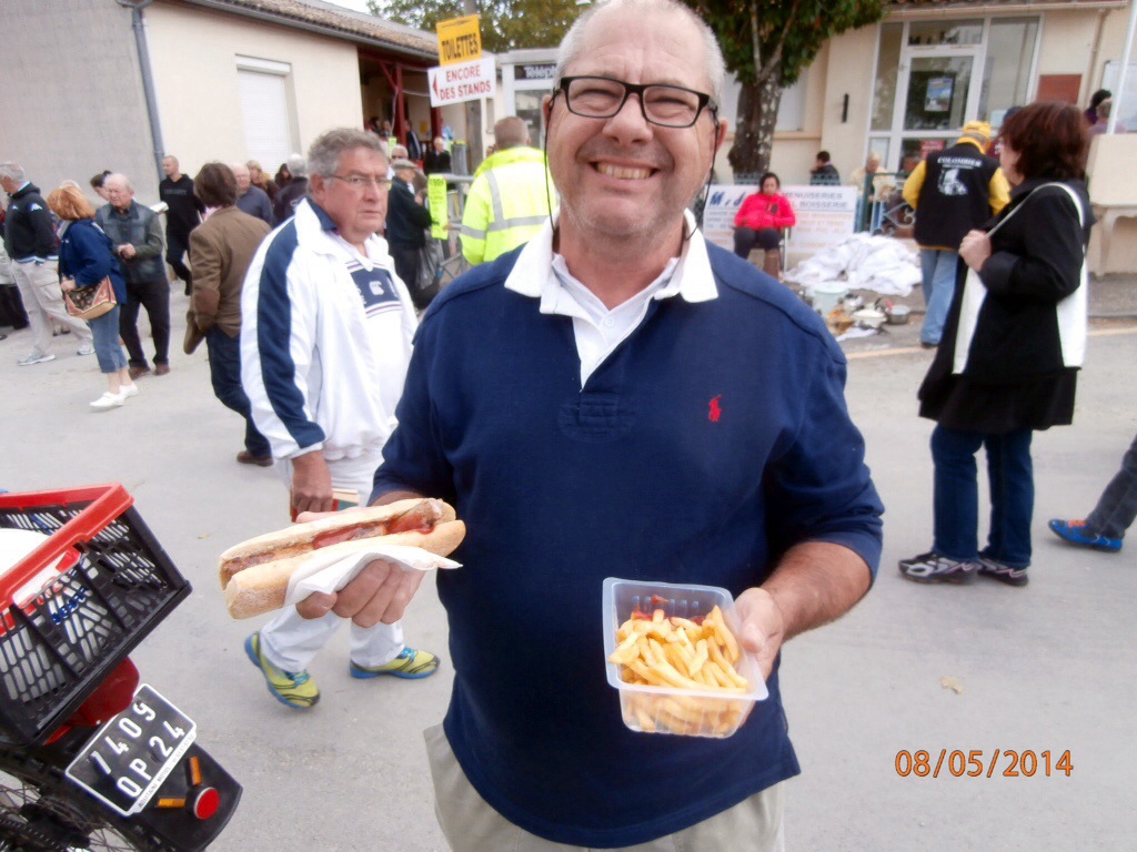 We had to buy some coupons for the food that we exchanged in a different spot all together for a grille saucisson (sausage in a baguette) and frites. It looked like a stall run by the Lions Club.
