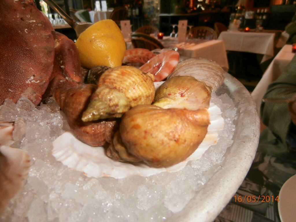 We think we ate whelks (bulots), periwinkles (bigorneaux), clams, raw mussels, along with other things we have eaten before. It was served with wonderful mayonnaise and butter.