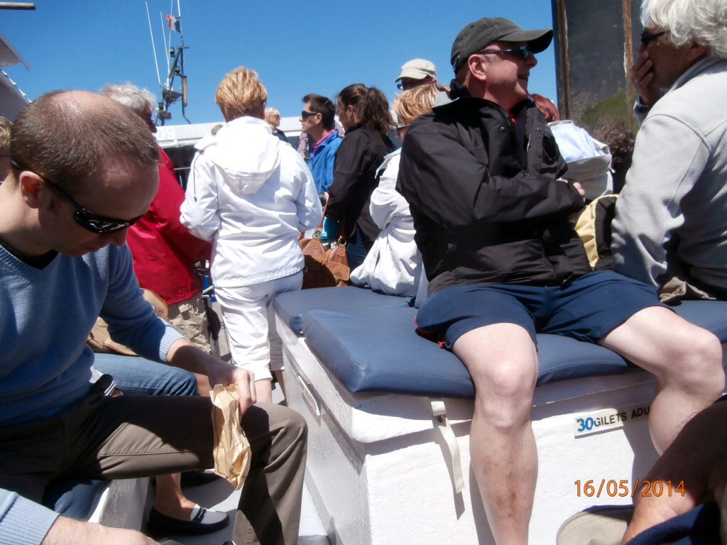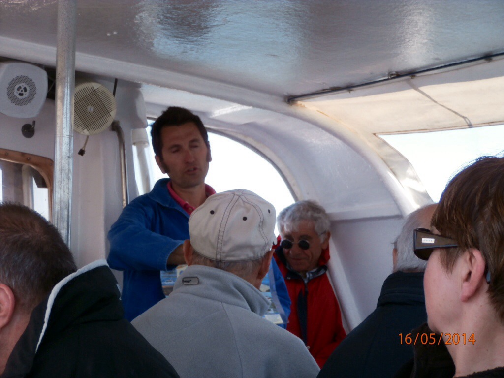 You can see how crammed we were on the boat. This next photo is of the Captain (Marin) who I thought might be going to give us a safety talk, but no. Even if he did bother with a safety talk, most of the people on board would have needed help to fit a life jacket and some sort of flotation device for the wheelchairs.