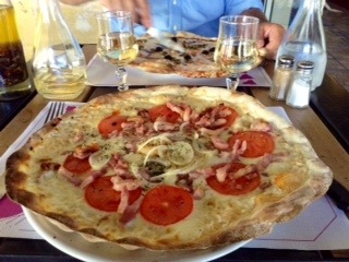 We decided we’d shout ourselves lunch at a nearby restaurant and ordered a petite pizza each. Look at the size of these!