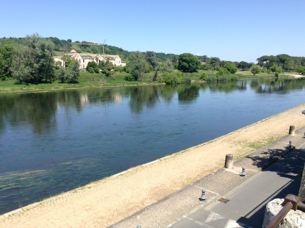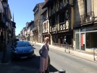 We explored the town a little including the banks of the Dordogne River where we spotted four large (?) Cod swimming happily. The town is typical of the ones we’ve seen while dog sitting last week. It is a bastide whose plan of the city is one of the most representative of the regular layout of new towns built in the Middle Ages. The river acts as a division of departments; across the river it is the Dordogne Department and we are staying in the Girande. About 25 km away is Duras which is in the Lot and Garonne.