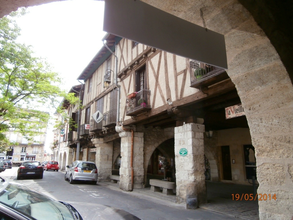 The typical arcades around the original market square of a bastide. This is one of the widest we have seen on our tour of bastides.