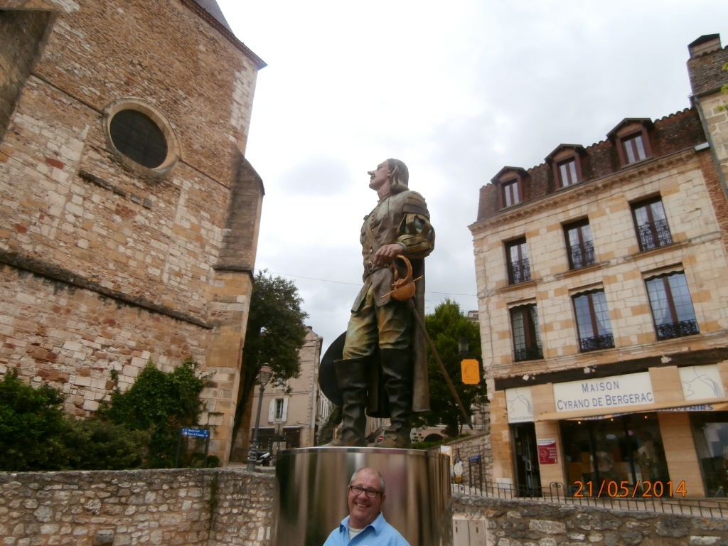 But, when we arrived in Bergerac it was market day and it was huge. I drove around trying to find us a park and after two aborted attempts, I found one that looked pretty easy BUT I ended up scraping the dress rim pretty badly. This cost me $50 for one cheap hub cap! Cé la vie. Michael is looking pretty happy in this photo with Cyrano de Bergerac, but there had been a few different faces on both our parts after the incident with the car.