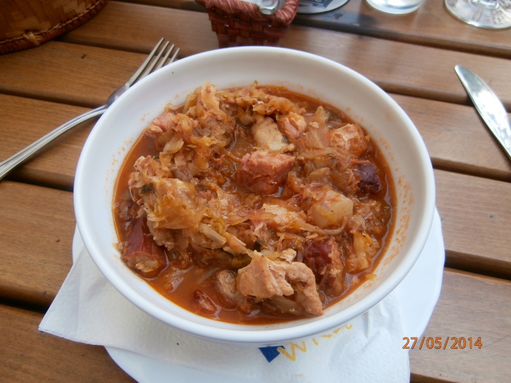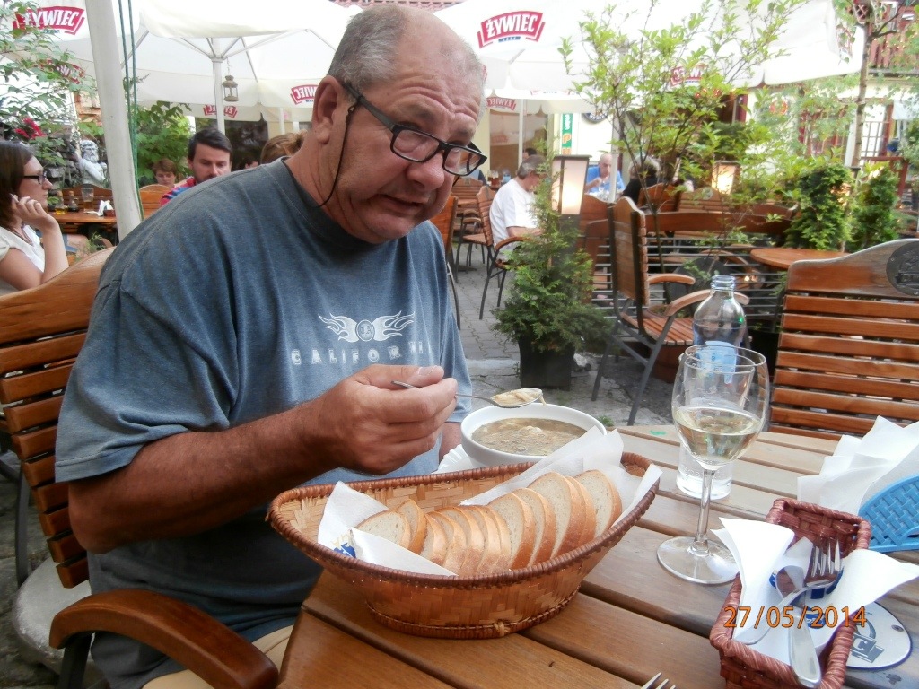 I had sauerkraut soup ($3), Michael tried beef tripe soup ($2.75) followed by pork knuckle (which he did not need for $10). The restaurant had run out of dry red wine, so we both had a white which was not too flash but cost less than $1.50 a glass).