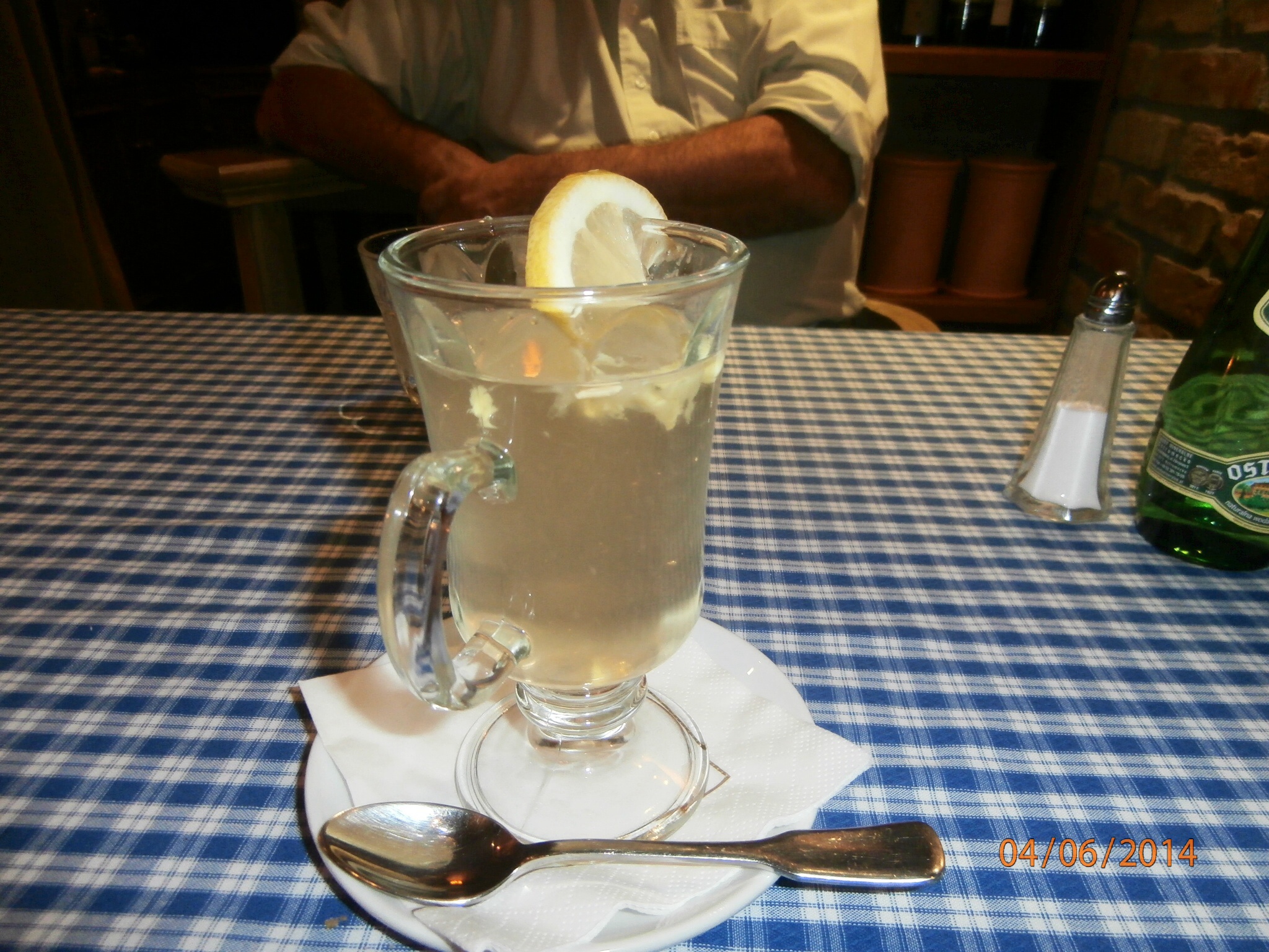 We finished the meal with a typical Polish drink. I had a warm drink made from lemons, ginger and Goldwasser, while Michael had a typical Gdansk vodka called Źubrówka, but referred to as grass vodka.