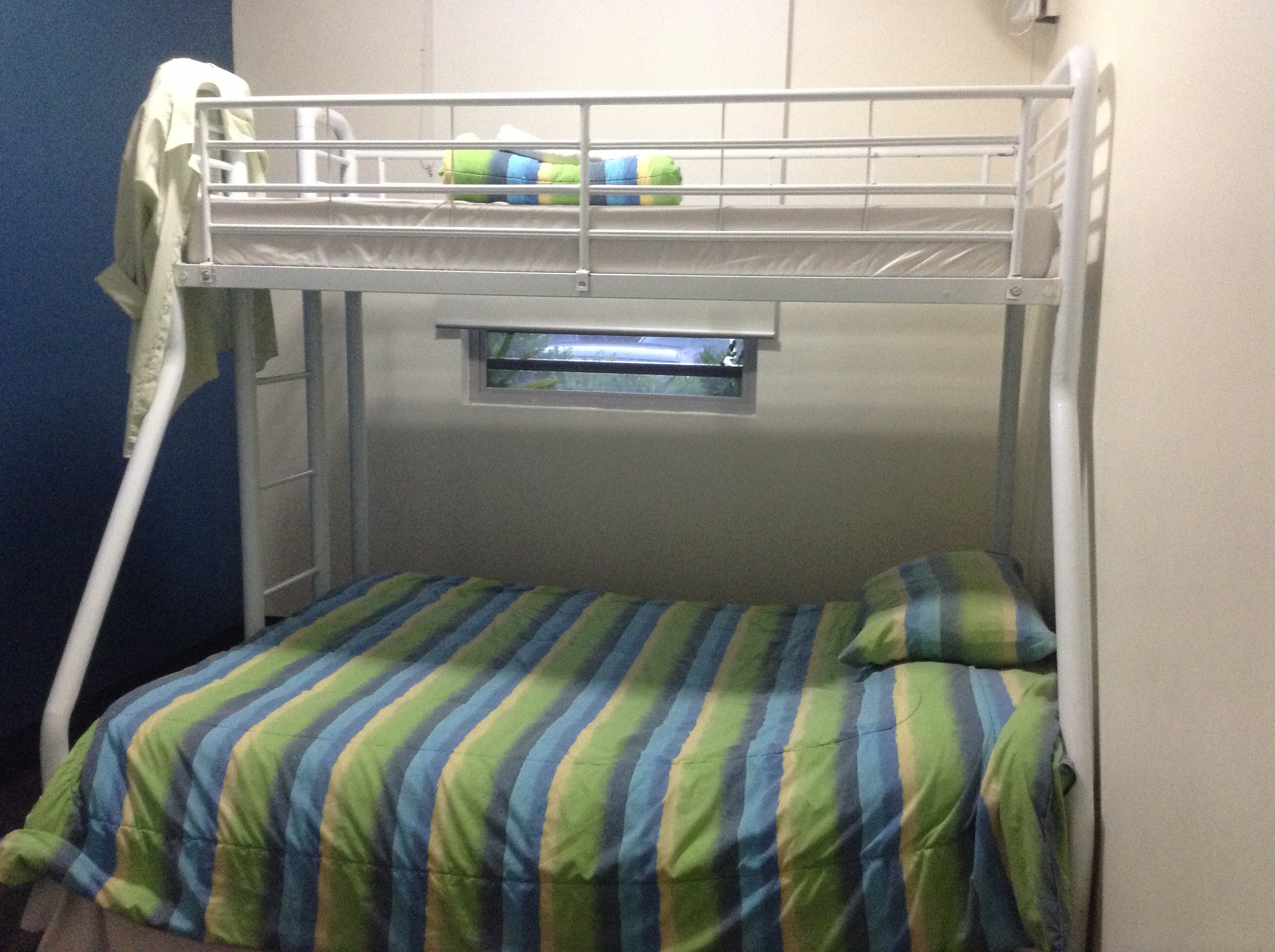 We caught a taxi to our hotel right in the middle of town. It is a budget hotel suited to backpackers, although I booked us a twin room with ensuite. This is our bedding arrangement.