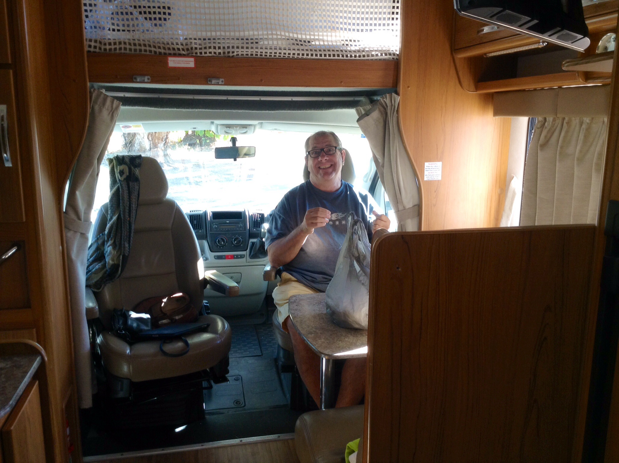 Here are a few shots of our van, showing Michael catching up on some a TV.