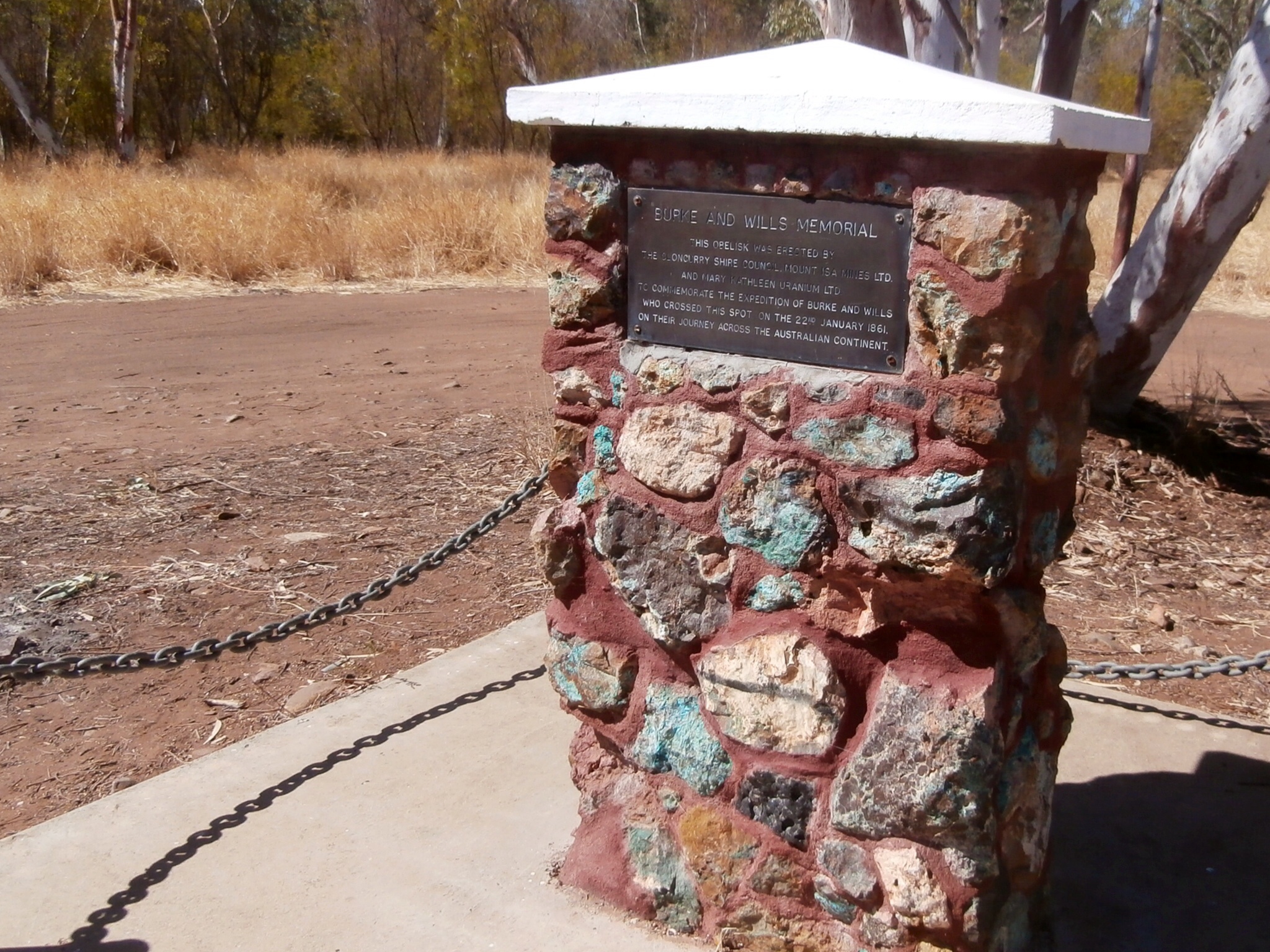 We stopped at the Burke and Wills Memorial at the (empty) Corella River. Burke and Wills had stopped at this point on 22 January 1861 as they made their way across the continent.