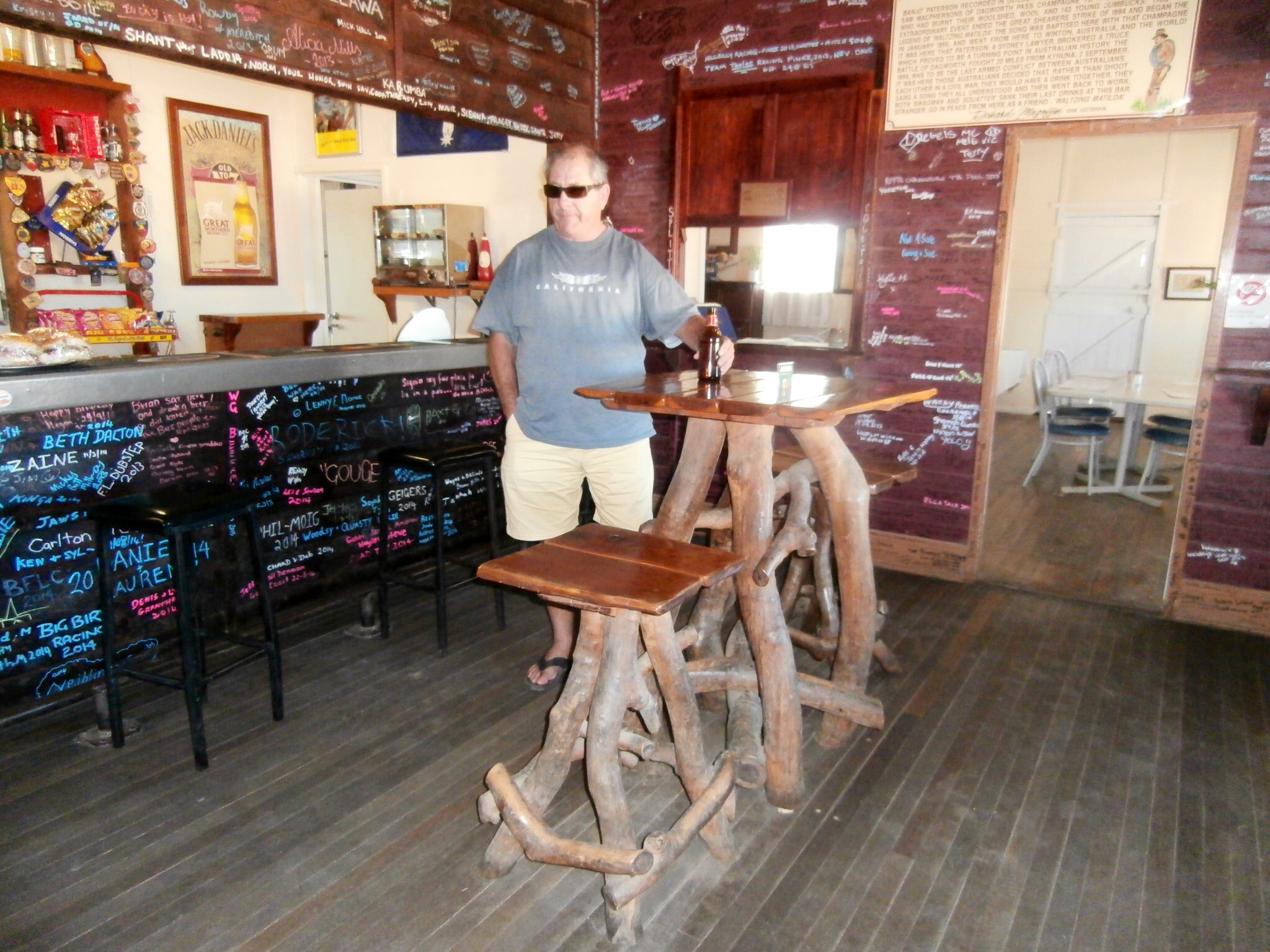 We booked into the Tattersall Hotel Caravan Park right in town and continued our pub crawl stopping first at the Great North Gregory, this hotel has the most wonderful Art Deco furnishings and the most unfriendly staff, so we moved on to the Australian Hotel but it only had XXXX on tap so we finished at the Tattersall where the beer was great and the staff fantastic. Backpackers seem to be the major employees of each of the pubs we stopped at today.