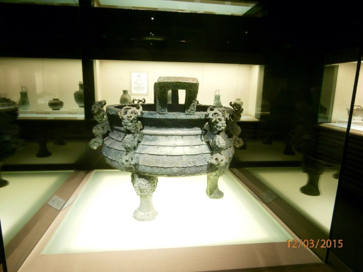 We visited the Shanghai Museum in the morning. A very extensive collection of Chinese bronze and pottery, jade and furniture. Some of the items dated back to 10C BC. Hard to believe the Chinese were making such amazing art, weapons and utensils that were so cleverly crafted well before any other civilisation. The visit was free and as we were there early we had easy access to displays. Loads of guards working there. As the morning progressed it became very busy with tour groups.