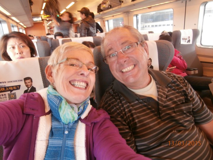 Our first trip on a long distance Chinese train had us gob-smacked. We were booked on a D-class train from Shanghai to Yichang. These trains are pretty fancy and pretty fast (195Km/hr). There are better ones and I am pretty sure we will get to try out one of those later on our trip.
