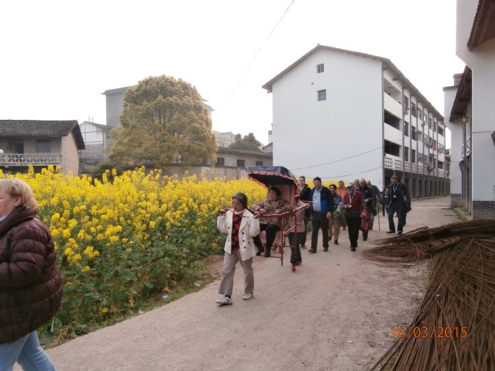 The lady being carried by the two women was a passenger on our cruise and she paid 40 RMB (~$8) to get to the attraction.