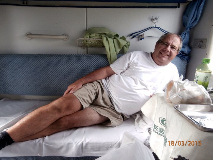 We had booked a local K train from Chongqing to Xi’an because Mick loves trains and the time of day suited us. The best seat we could get was a four-berth sleeper.