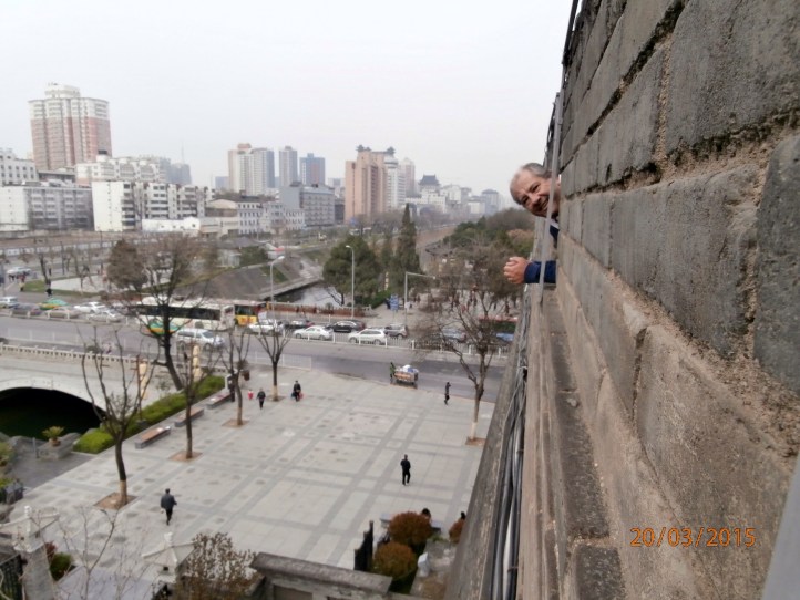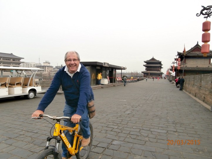 Our first stop this morning was to the city wall. Xi’an is famous for its beautiful city wall, one of the largest, intact walls in the world. Its perimeter is 37Km. We entered through the North Gate and hired a bicycle each to ride around (part of) the wall. The surface was built from bricks and was very bumpy. After about 2 Km, the chain fell off my bike, so I had to push it back. There was no such thing as a refund!