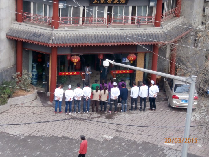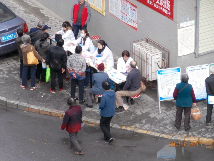 On the inside the local markets were underway. There was a free health clinic operating on the pavement where local people were getting the blood pressure taken. In front of one restaurant the staff were lined up being spoken to by the managers / bosses. Irene explained that this is common for businesses to stand their staff in front of their premises each morning for exercises and training.