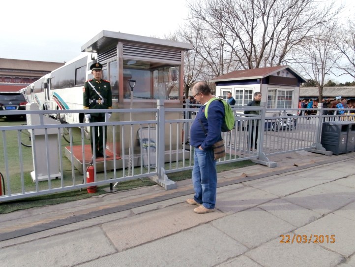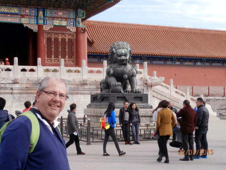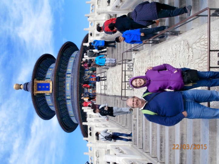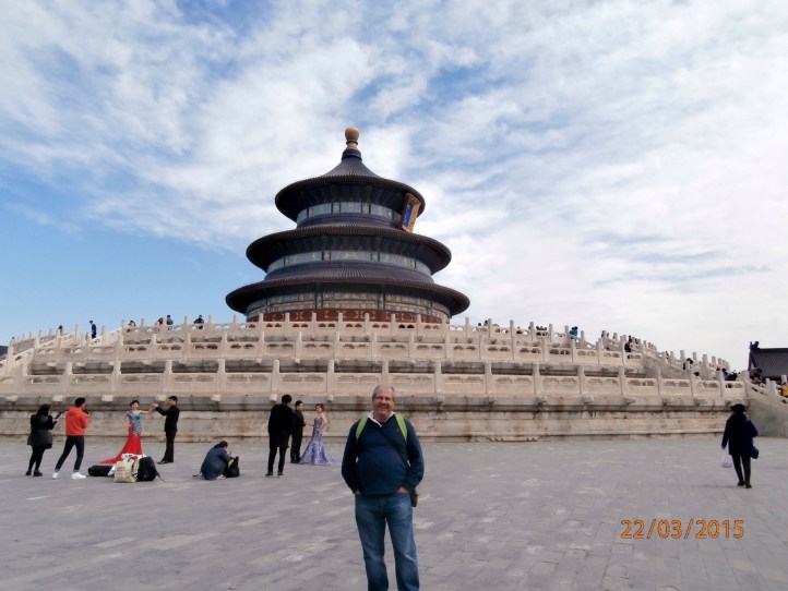 Our first taste of the Beijing traffic followed as we are driven to the Temple of Heaven. This is the largest ancient imperial worship architecture in the world. Daniel liked a sideways view, sorry!