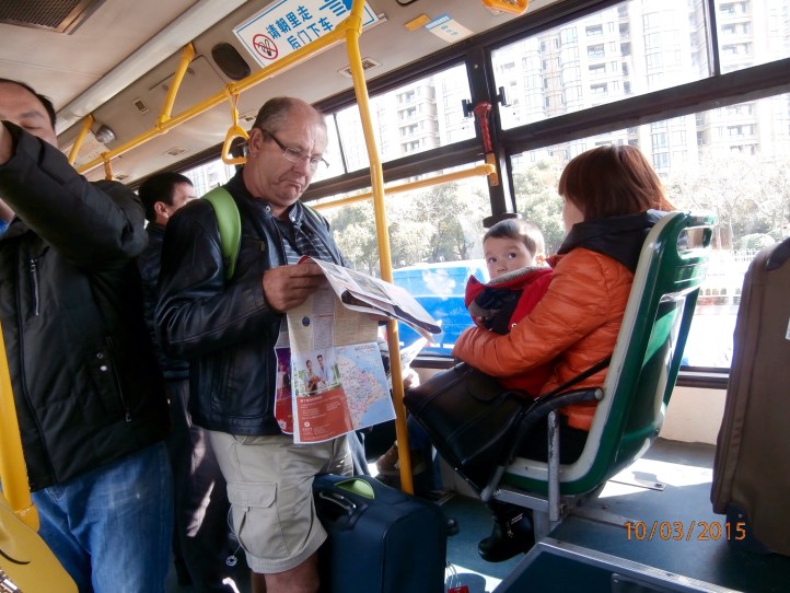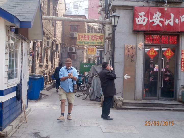It is allowed in bars and restaurants and also on local trains. Taxi drivers smoke, some shop assistants smoke. We did not try to buy any, but were told that a packet costs 20RMB (<$4.50AUS) and that you could even buy cheap packets for 5RMB. This was one thing I really disliked about my stay in China. Mix the cigarette smoke with the smog and it makes for an uncomfortable time. We stayed always in non-smoking rooms but could often smell smoke in almost every place we stayed. On our cruise along the Yangtze Rover we were told that it was a totally non-smoking boat and smokers were told they must use their balconies for smoking. We were confused too! This photo shows Mick using his hand sanitiser after he’d been to a public toilet and a man enjoying his smoke.