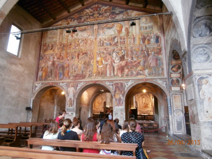 Just across from this piazza is the most famous church in Lugano – Chiesa Di Santa Maria degli Angioli (Saint Mary of Angels). It is famous because Luini painted a huge fresco on the wall of the nave, said to be Switzerland’s most famous Renaissance fresco, conveying the Passion and Crucifixion. It was painted in the 16th Century, and it was amazing to see the colours and details present there today.