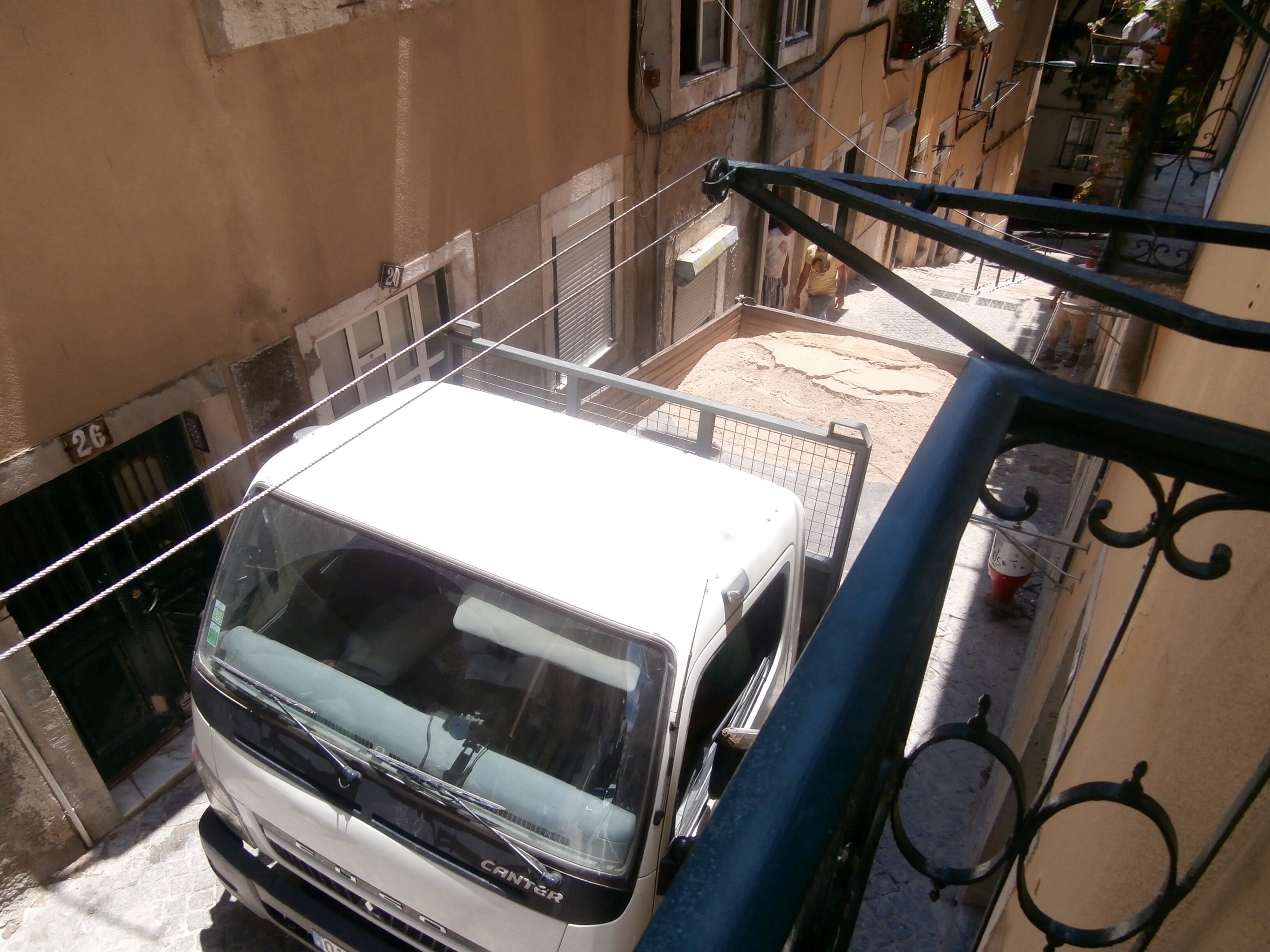 We were woken this morning by the sounds of building construction in neighbouring apartments. This area comprises 18th Century buildings and some of them look as though they have not been touched since they were built. Our apartment has been done up thank goodness. This truck was delivering a load of sand down this pedestrian street we live on!