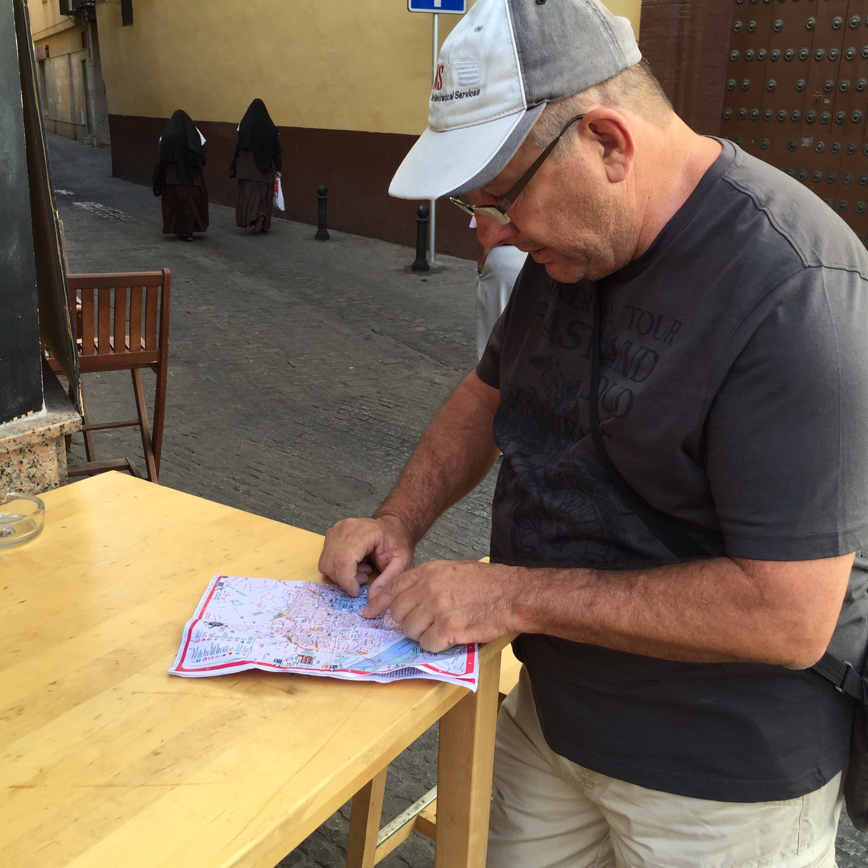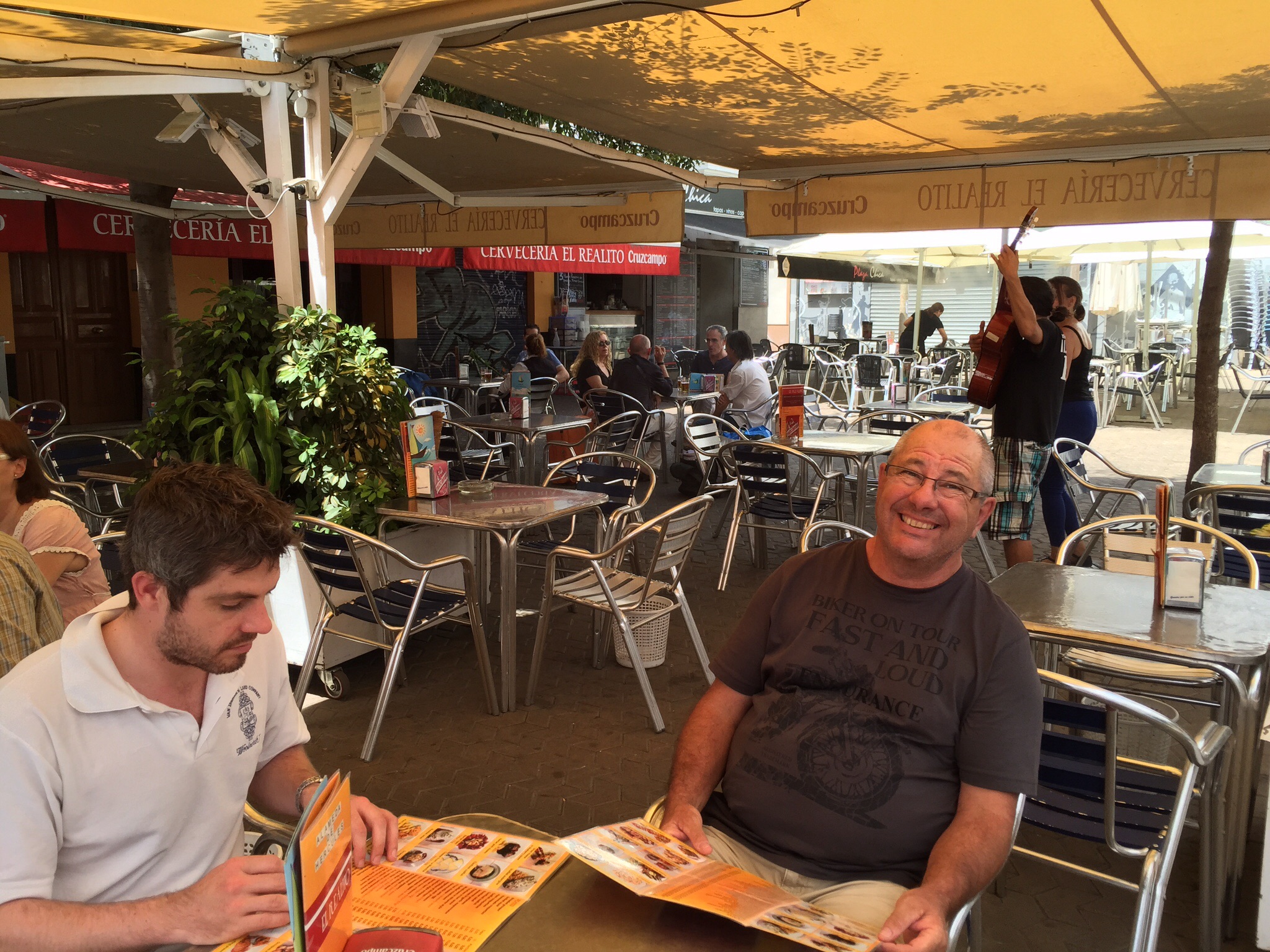 Seville is a very pretty city and there will be lots we will explore further over the next few days, but after the tour we needed some food. We tried a local tapas bar where we sat under huge umbrellas that were misting fine jets of water over us to help keep us cool.