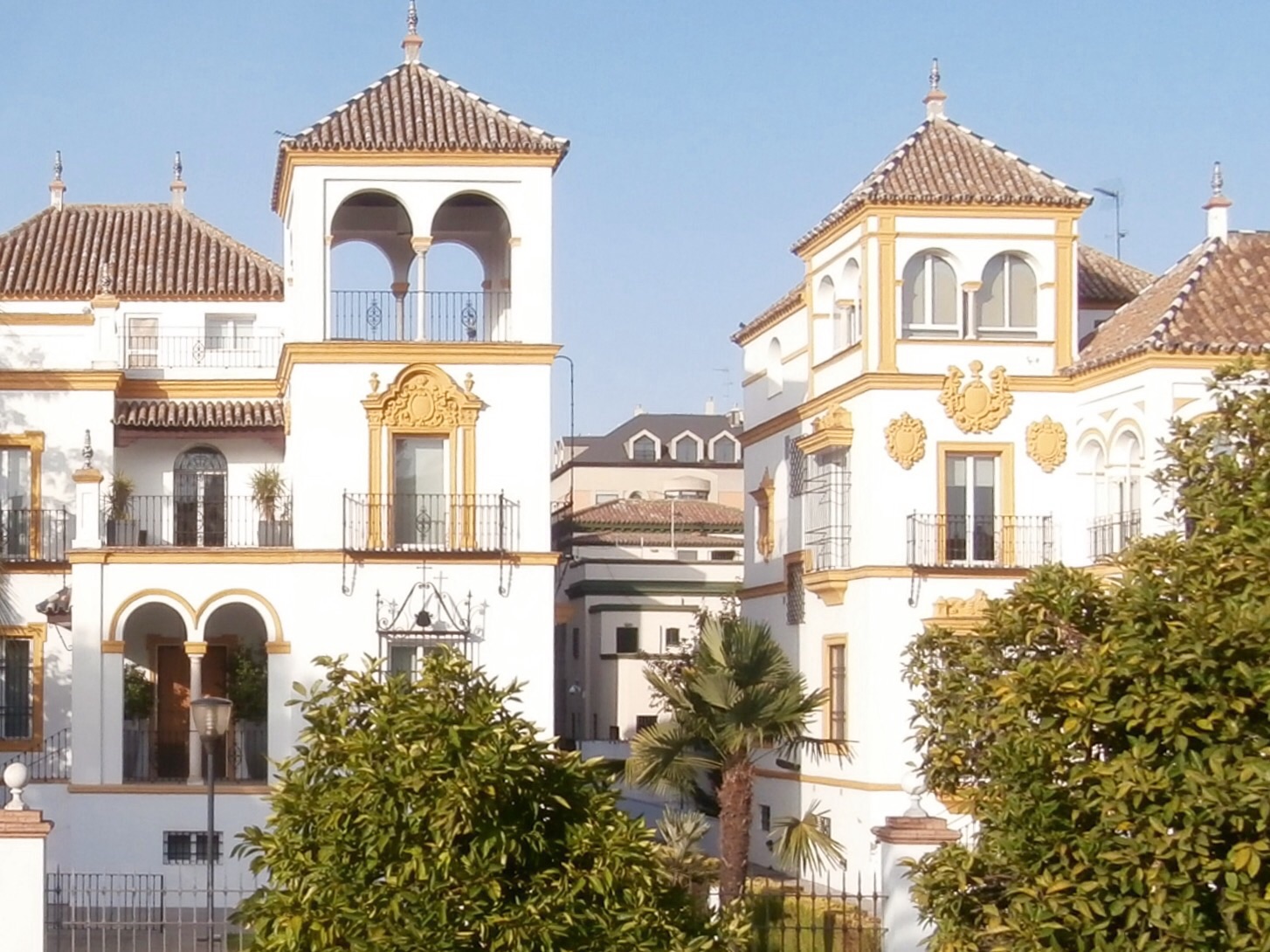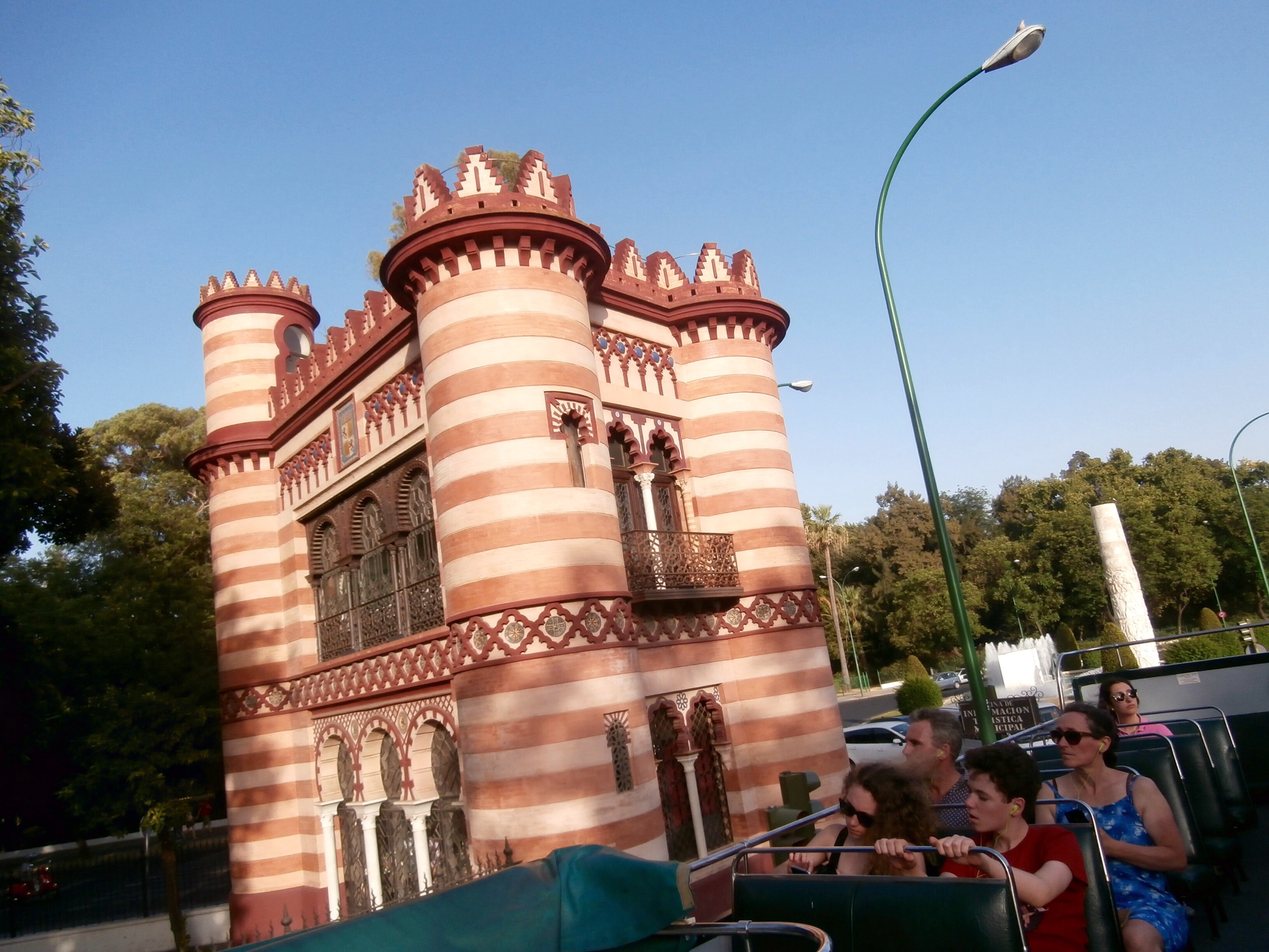 We took advice from the locals, and we spent the middle of the day inside in air conditioned comfort, and headed out on an evening bus tour of Seville. This however did not turn out to be much cooler at all to explore this beautiful place. The temperature signs were showing 45°C at 8.30pm. These two photos show some typical architecture of the city.