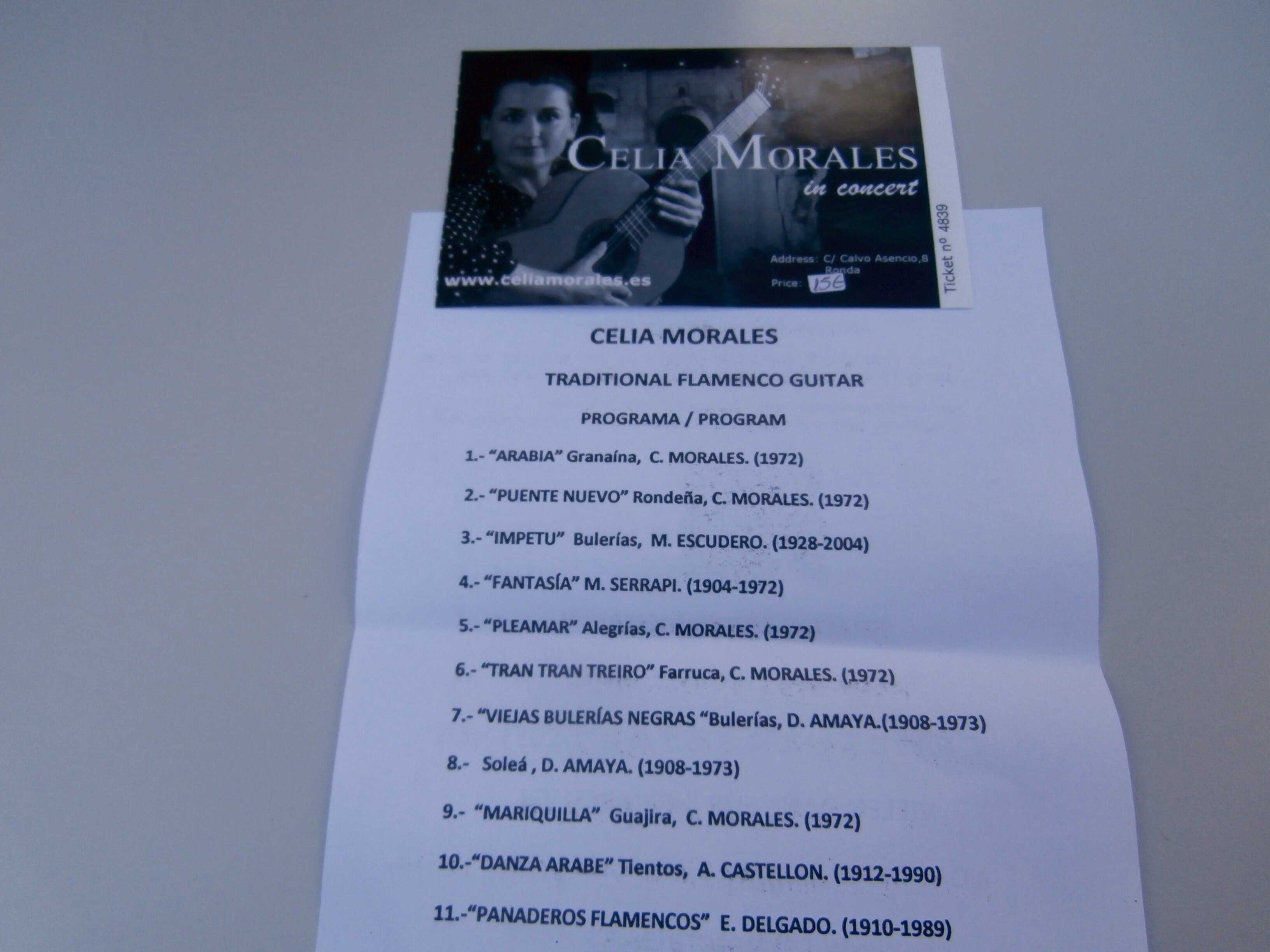 Last night, we attended a concert by Celia Morales – a traditional flamenco guitarist. We had read about her on Trip Advisor, and as her studio was only a five minute walk away, we decided to go take a look. Again, this concert cost us €15 each.