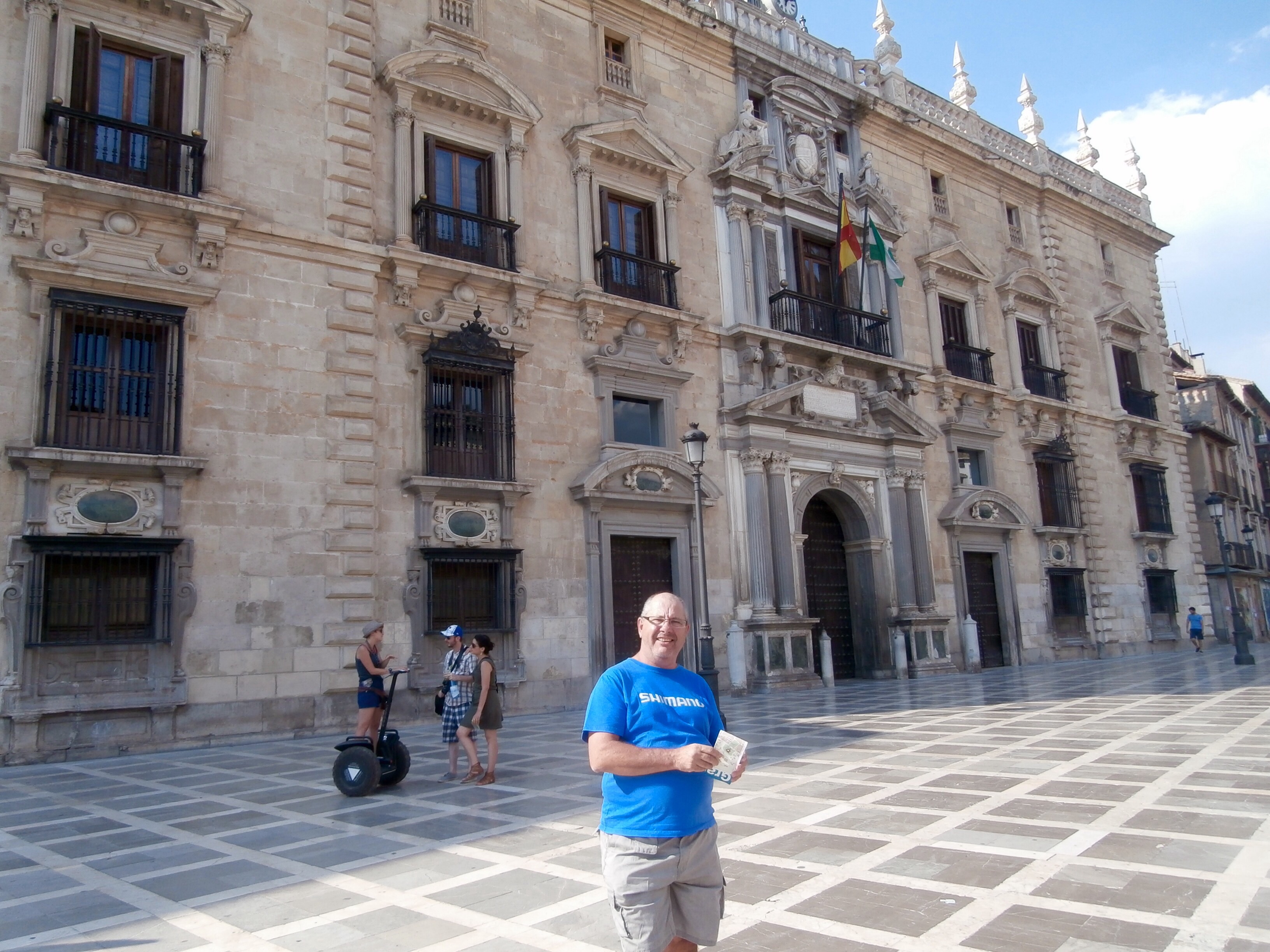 Mick posed outside the Plaza Nueva. We thought about a Segway tour, but think we will explore the city on foot. Several tourist officers approached us very politely suggesting ideas, and we will think about them tonight. We are just happy to be here with the washing machine working on overtime.
