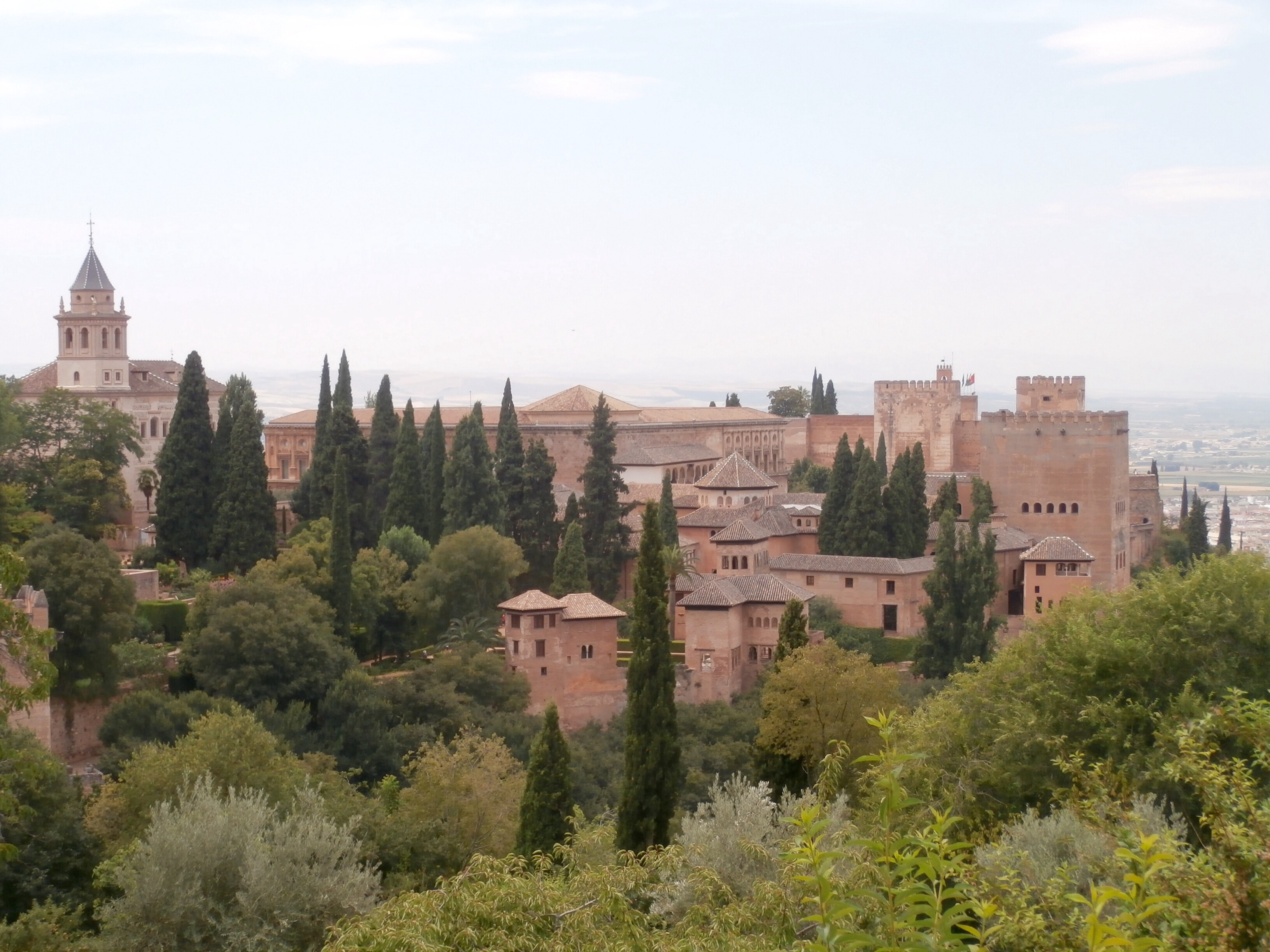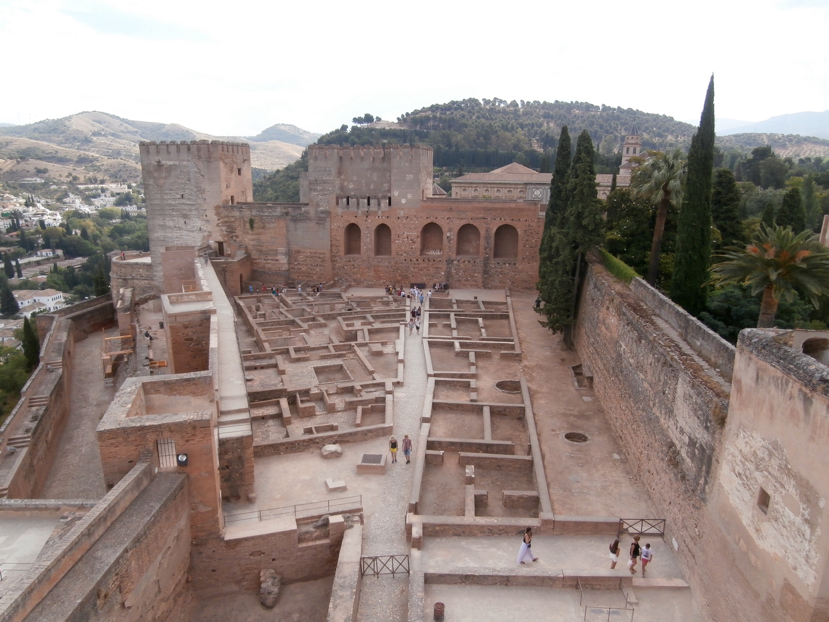 Alhambra is really a group of palaces, fortresses and beautiful gardens, ranging in ages from the 9th Century to the 18th Century, and as such the buildings and gardens reflect many different influences. Initially it was an Arabic fortress, then in the 13th Century it was converted by Nasrid emirs into a fortress-palace adjoined by a small town. I took this photo of the ruins of that town from the Torre de la Vela (Watchtower).