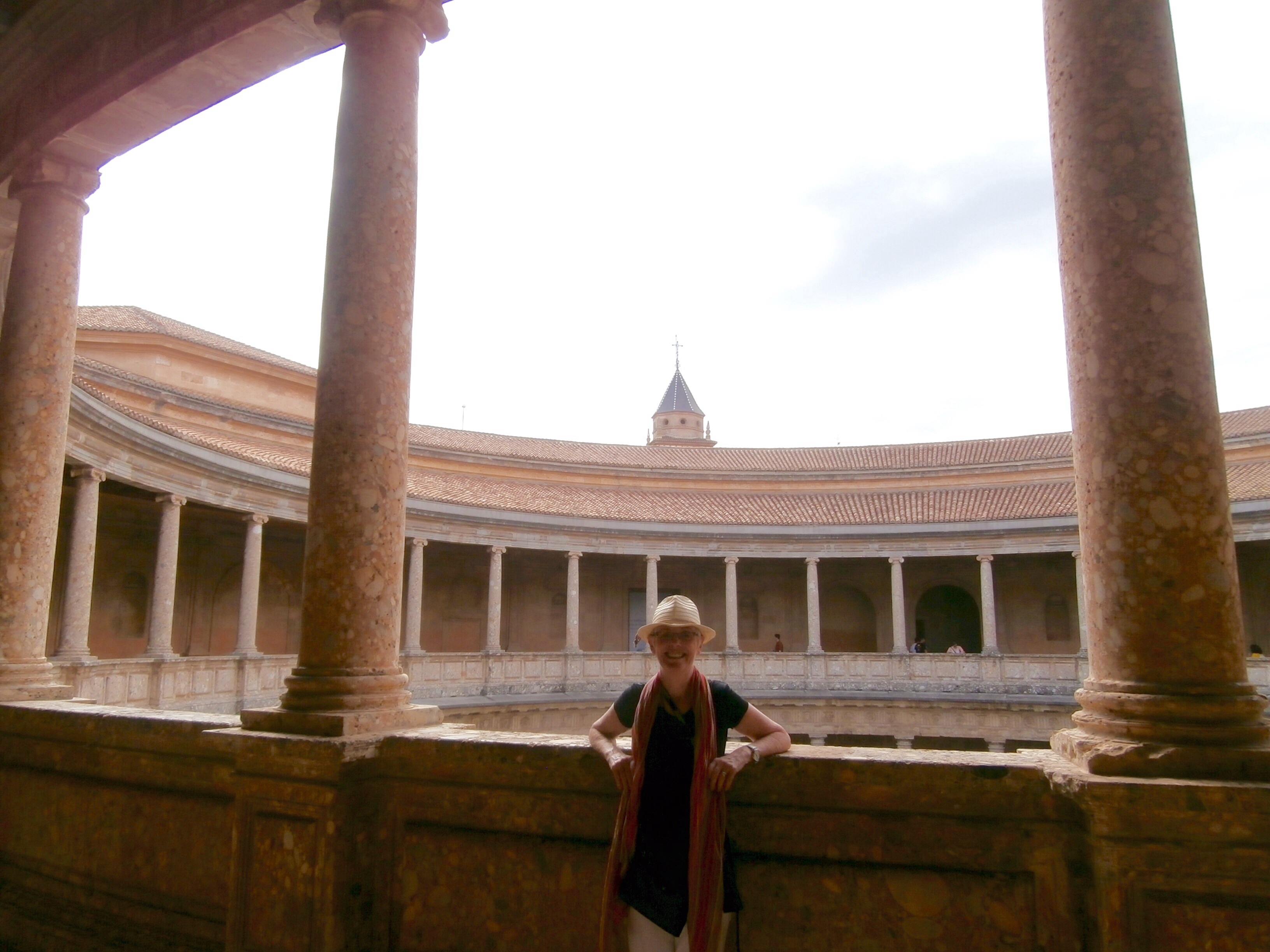 Charles V built a huge Renaissance Palace here in the 16th Centurt. It is a square building from the outside, but inside it has a circular two-stored courtyard.
