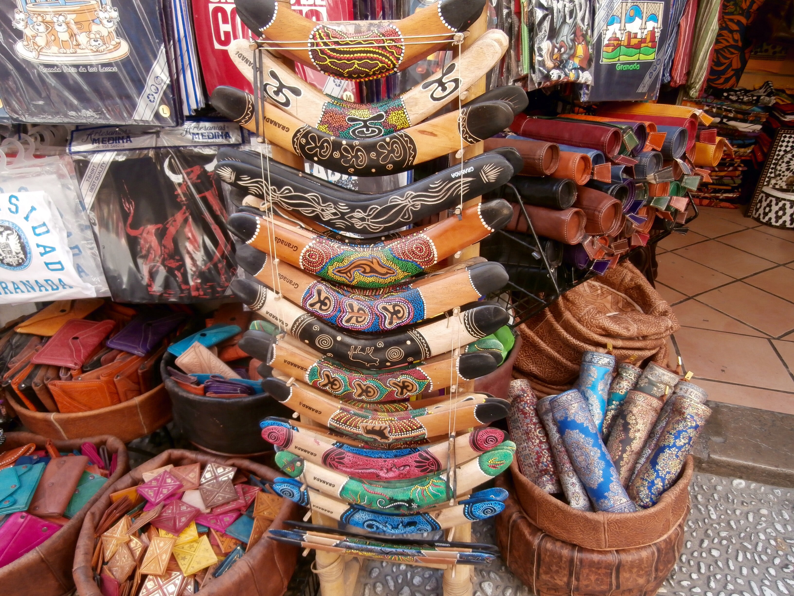 Where we are staying however, still retains a very strong Muslim population and culture. The conversations in the streets below our apartment do not sound Spanish. It is as if we are in a different country – an Arabic one at that. There are many shops in our street, all selling the same things for the same prices. I am unsure how they can make a living. We did get a giggle out of these items for sale for only €4. A definite mixing of cultures we thought.