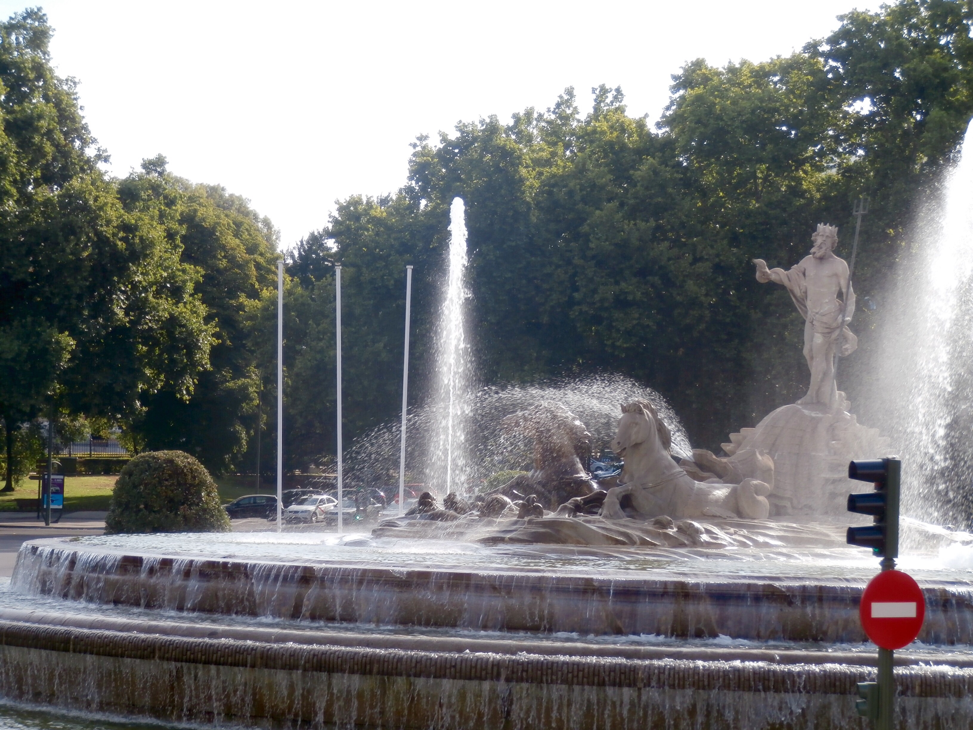 Fuente de Neptuno – depicts the sea-god in a conch-shell chariot pulled by sea horses and surrounded by dolphins.