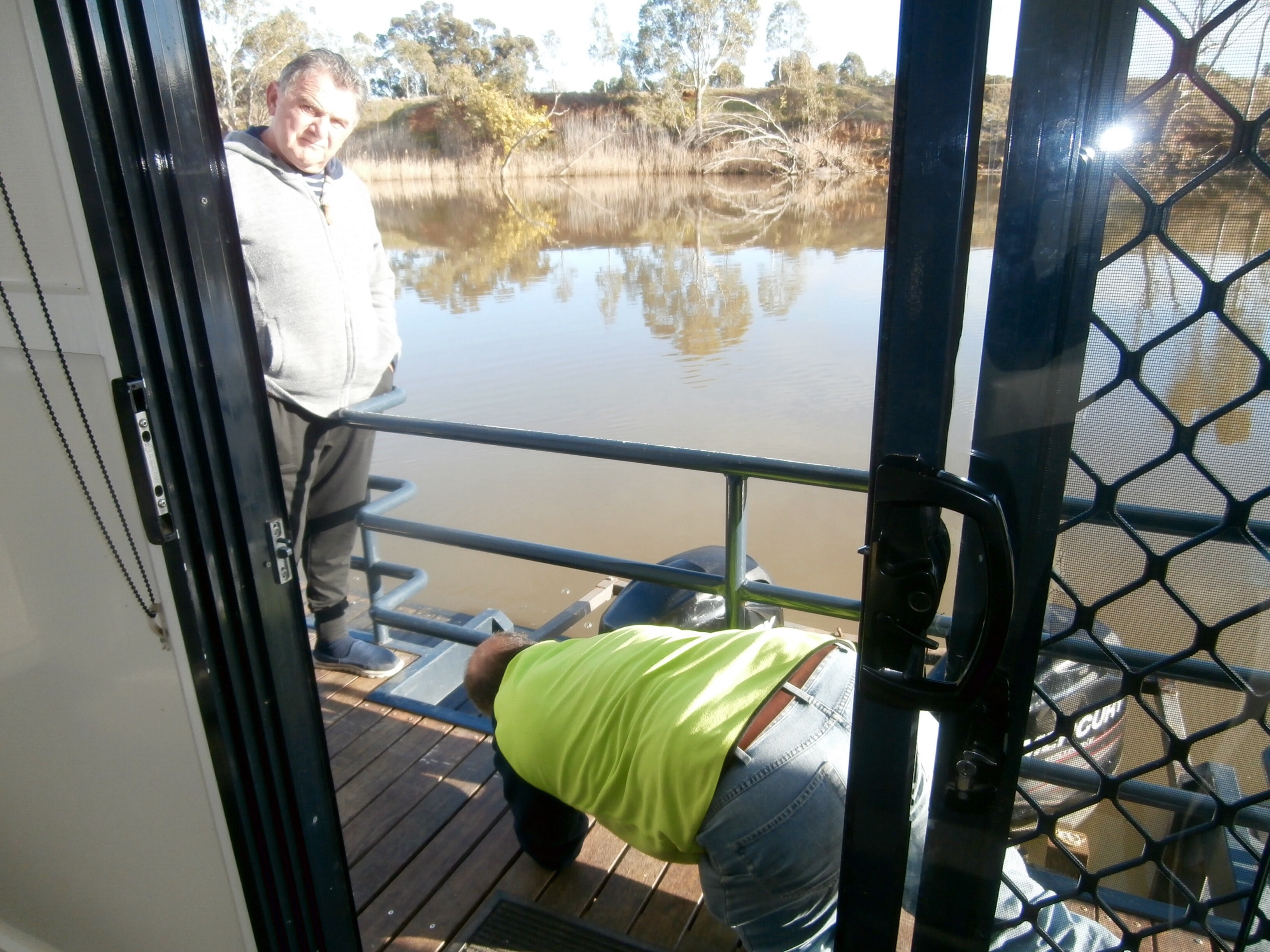 While the boys enjoyed a big breakfast of bacon and eggs, I went for a walk along the river bank, it was beautiful and luckily there was a road which I followed so I would not get lost. The only other living things I spotted were a pair of kangaroos – interested in what I was doing. Once back on the boat, the motors were fired up in readiness for the next part of our trip.