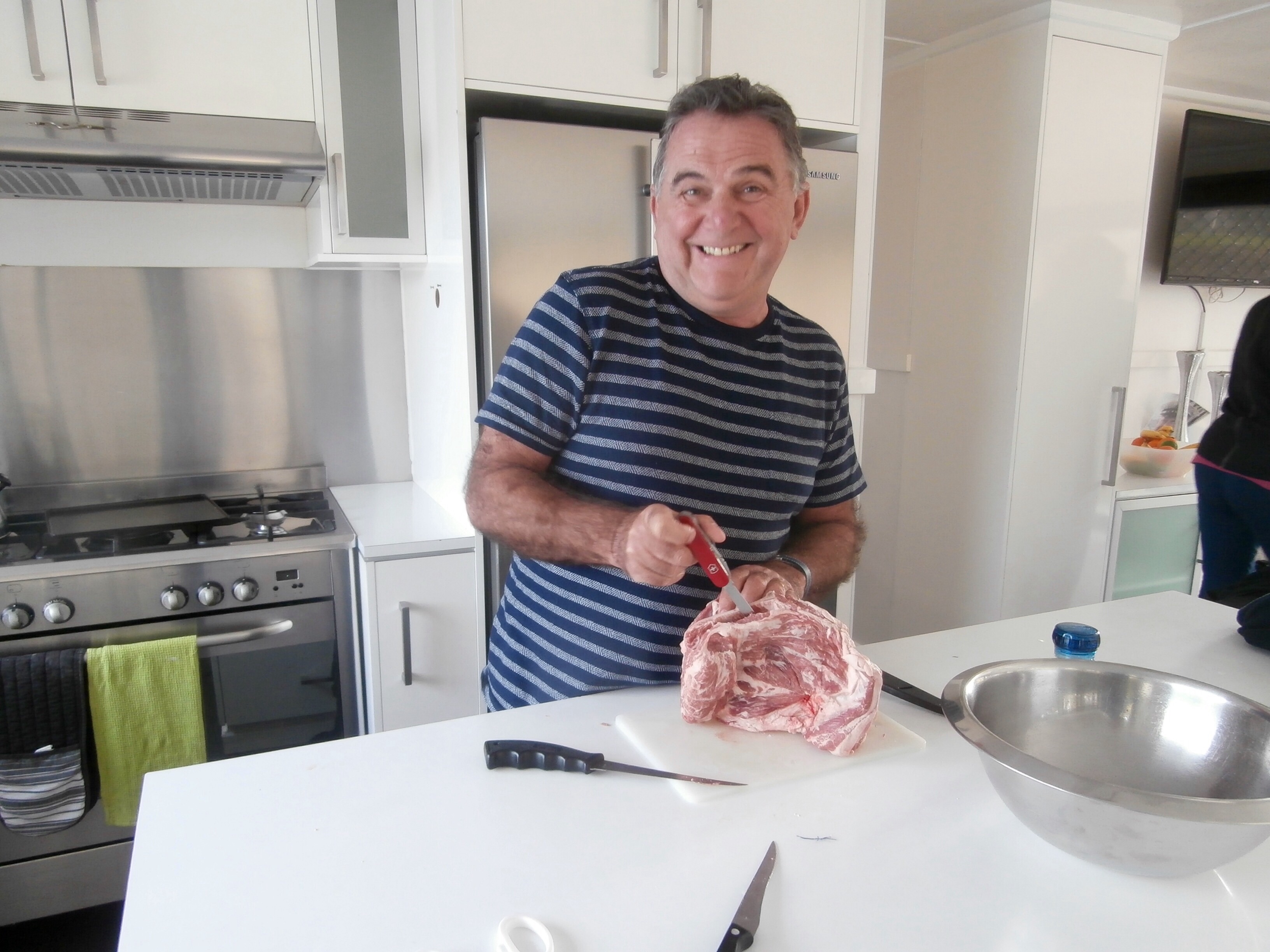 Mick oversaw the dissection, unable to leave poor Derek alone. Steve was worried, not about the meat but about his favourite filleting knife that Derek was using.