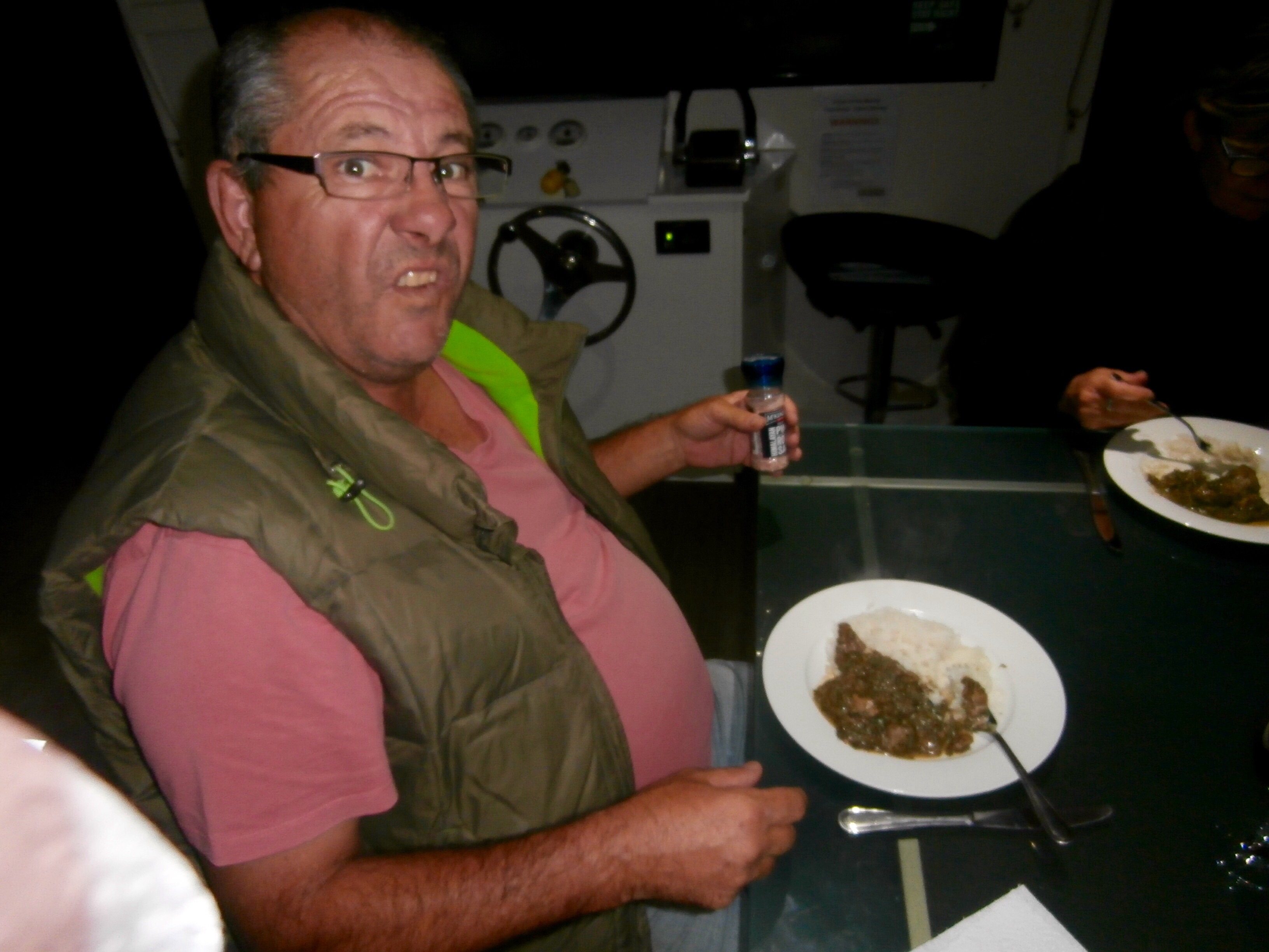 Derek eventually resorted to his Swiss Army knife. Mick made a joke that the Indian Curry may taste a little “Swiss”, and we all laughed.