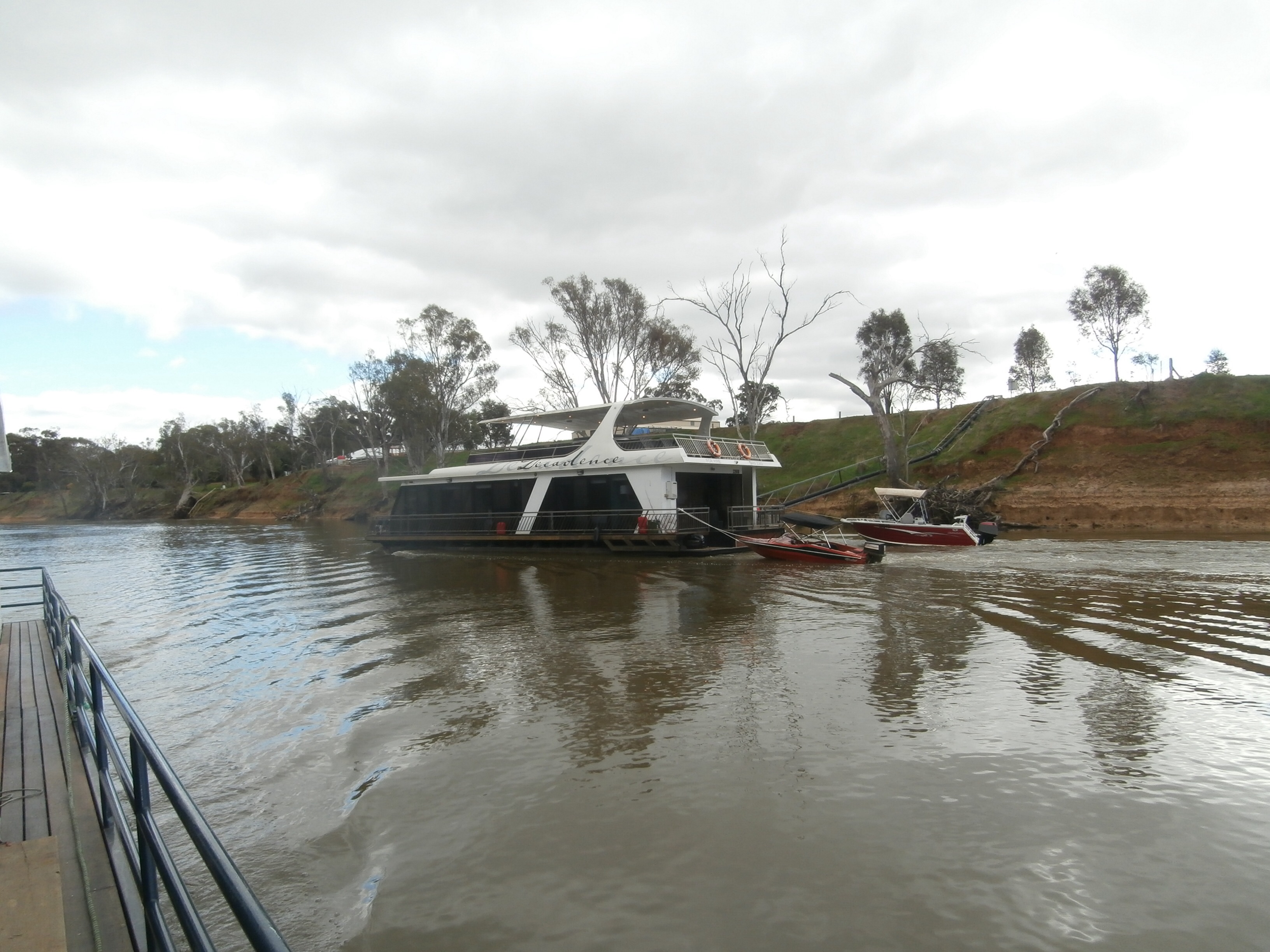 There was even some traffic on the water today as well. This huge houseboat with two fishing boats sped by us. We think there is a fishing competition on this weekend so we may have to share the Murray with some others.