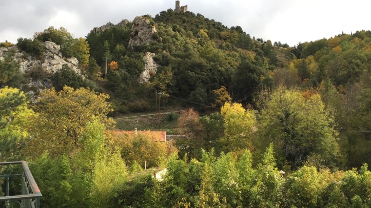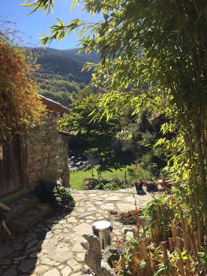 Her beautiful home is on the edge of a gorge (Gorges de Sant Jaume) near the village of Caudiés (cor-de-ayzes) in Fenouillet (fen-we-ay).